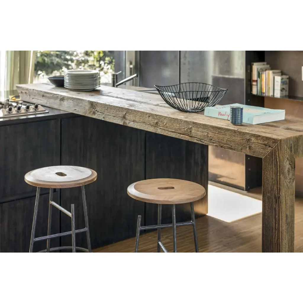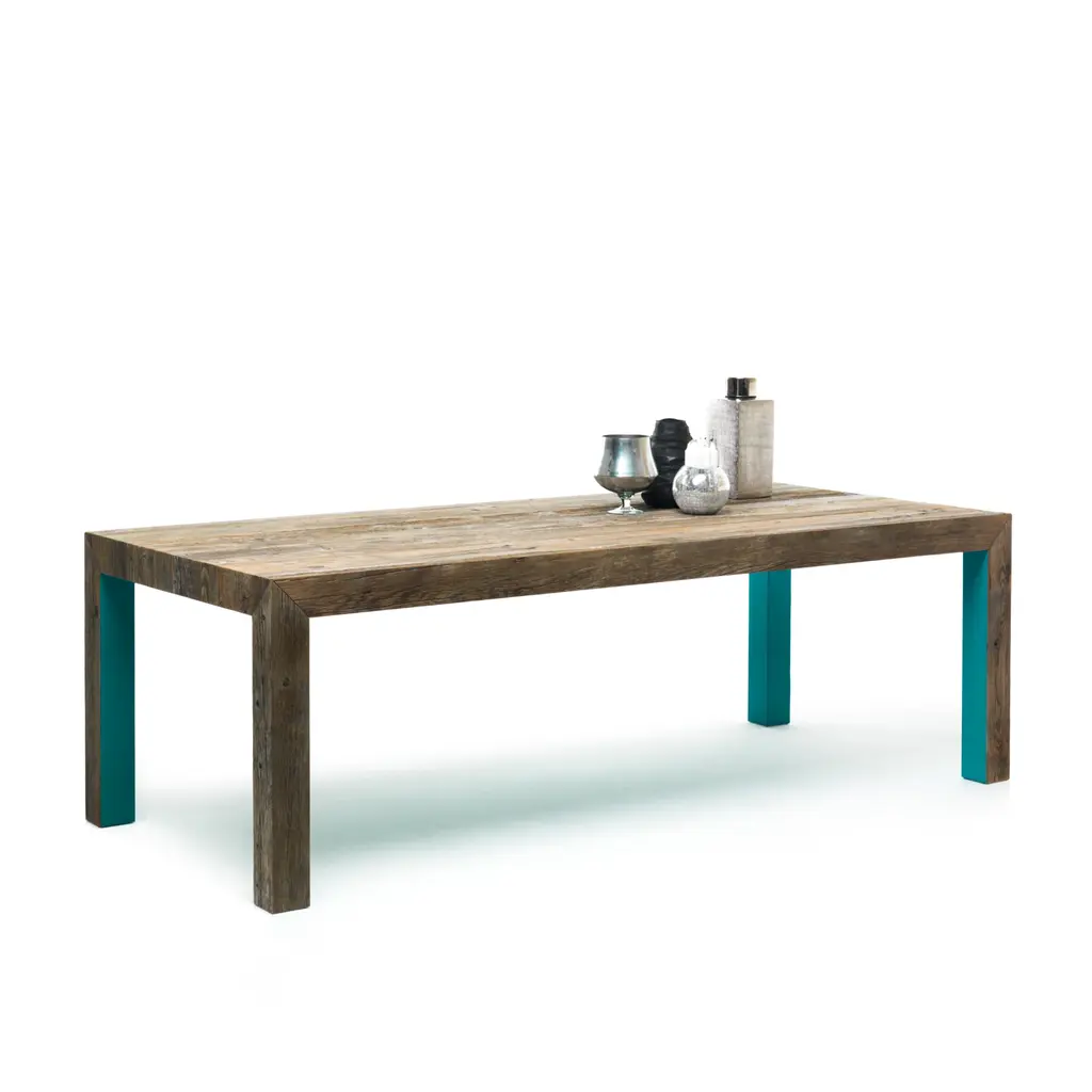 Indulge in the timeless beauty of our Antique Larch Wood Coffee Table - Mogg Zio Tom. Crafted with recycled antique larch wood, this table features essential lines and a warm wooden soul. Its irregularities only add to its unique character. The inner sides of the legs and the underside of the top are delicately lacquered in colors of your choice. Elevate your living space with this elegant and exclusive piece.