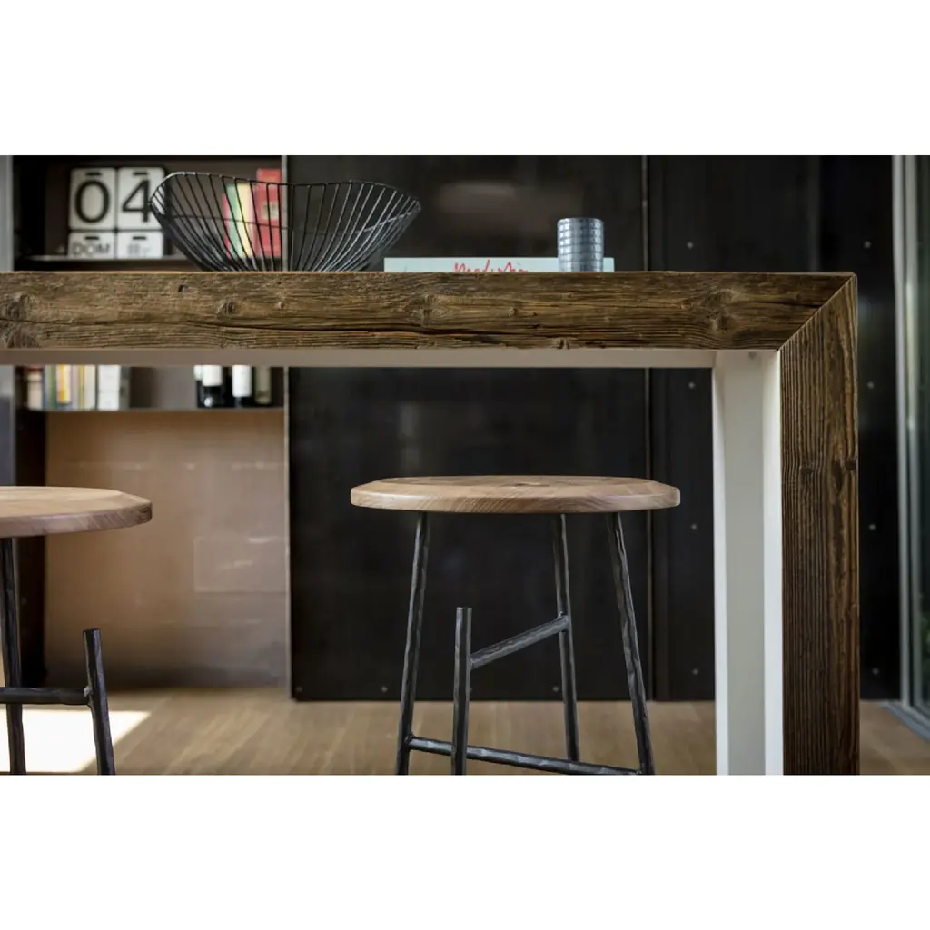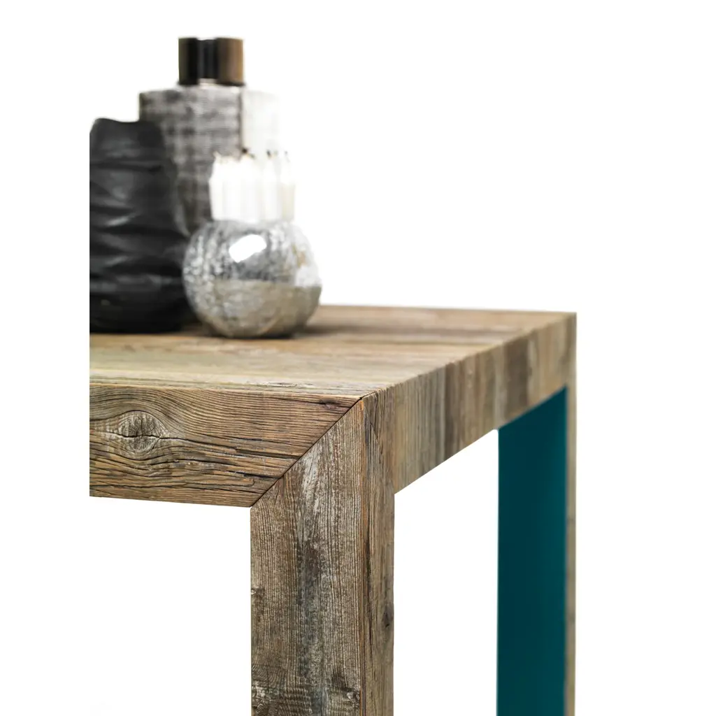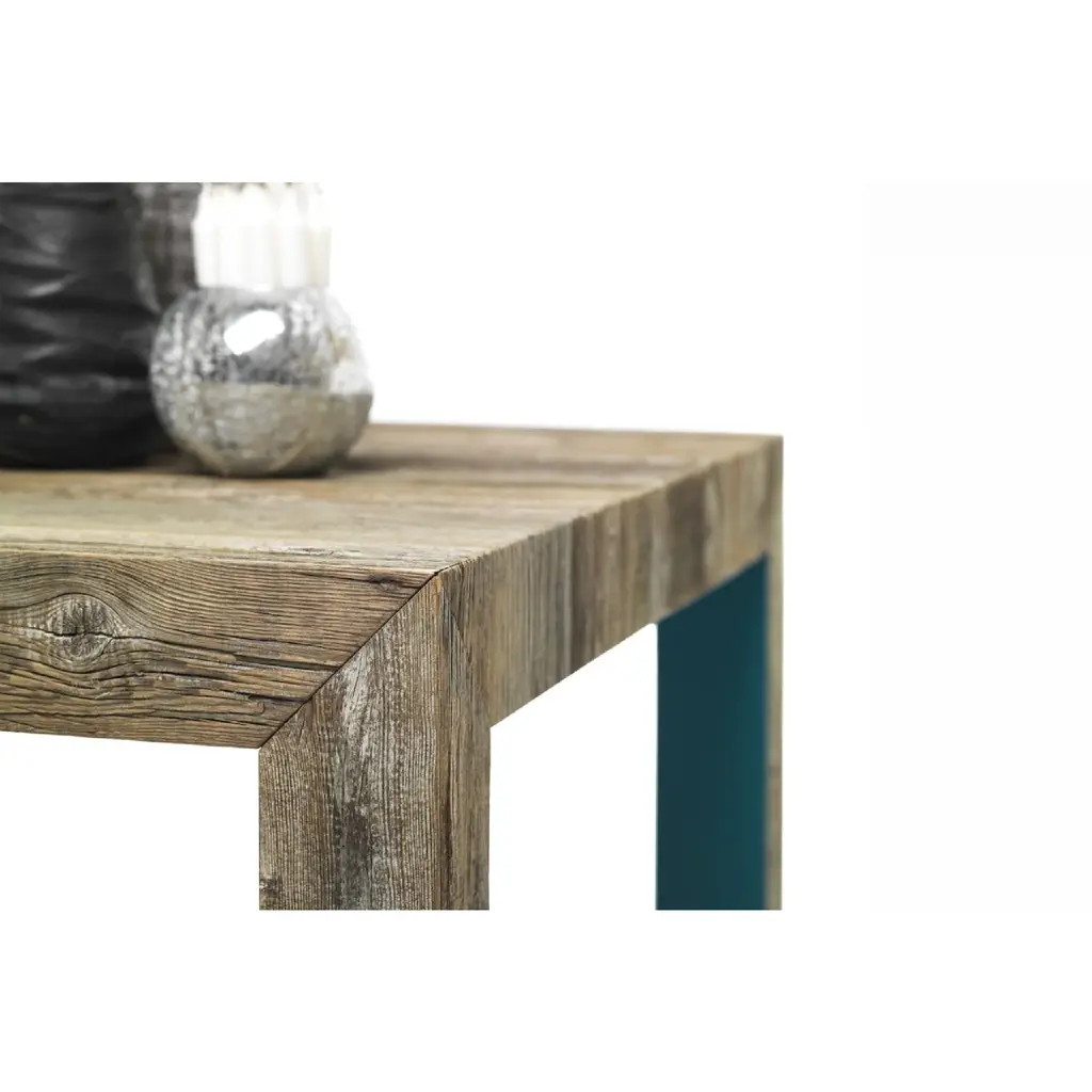 Indulge in the timeless beauty of our Antique Larch Wood Coffee Table - Mogg Zio Tom. Crafted with recycled antique larch wood, this table features essential lines and a warm wooden soul. Its irregularities only add to its unique character. The inner sides of the legs and the underside of the top are delicately lacquered in colors of your choice. Elevate your living space with this elegant and exclusive piece.