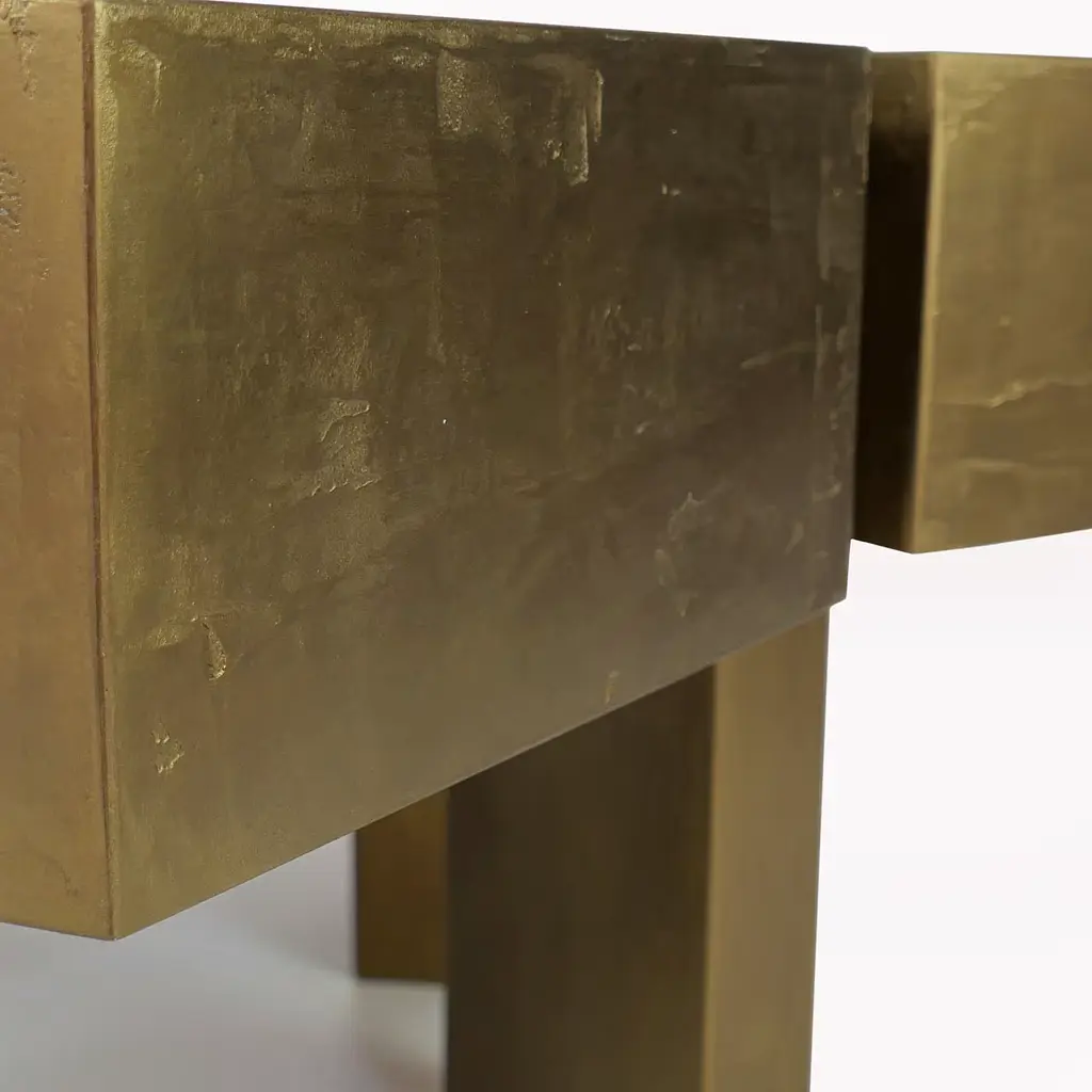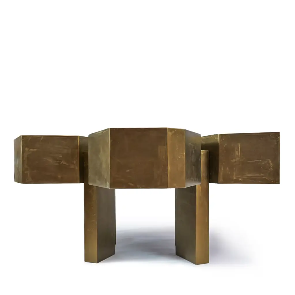 Appio Aeris, the “Bronze Appio”, is a chromatic version that revisits the famous forms of the ancient Roman roads, from which it takes its name. Appio is the perfect coffee table for refined spaces, created and crafted by hand, it is made of wood, and covered in hand-brushed cement with an opaque bronze finish.