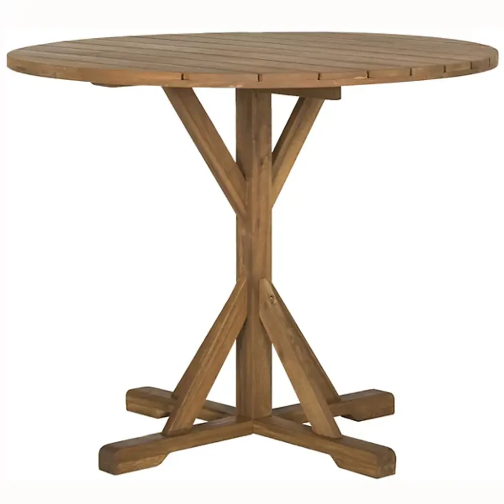 The Arago Outdoor Coffee Table from Alder & Ore utilizes a specialized X-base design that provides maximum stability while maintaining an airy presence. The acacia wood construction demonstrates superior resistance to outdoor conditions. Galvanized steel reinforcements ensure lasting structural integrity. The round shape promotes easy conversation flow and comfortable seating arrangements. This rustic modern table serves as an anchor point for outdoor gatherings, combining applied engineering with sophisticated aesthetics.