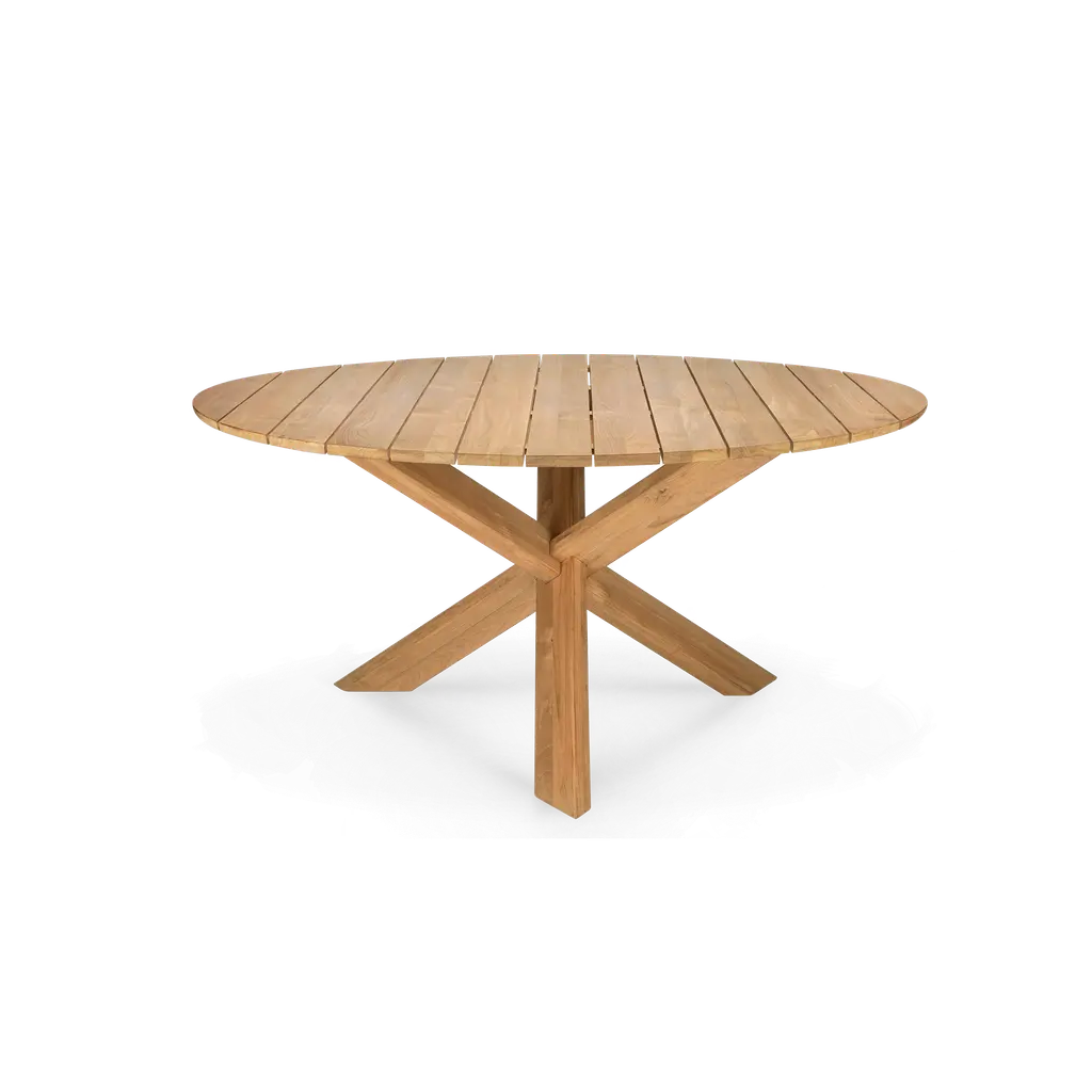 The Arago Outdoor Coffee Table from Alder & Ore utilizes a specialized X-base design that provides maximum stability while maintaining an airy presence. The acacia wood construction demonstrates superior resistance to outdoor conditions. Galvanized steel reinforcements ensure lasting structural integrity. The round shape promotes easy conversation flow and comfortable seating arrangements. This rustic modern table serves as an anchor point for outdoor gatherings, combining applied engineering with sophisticated aesthetics.