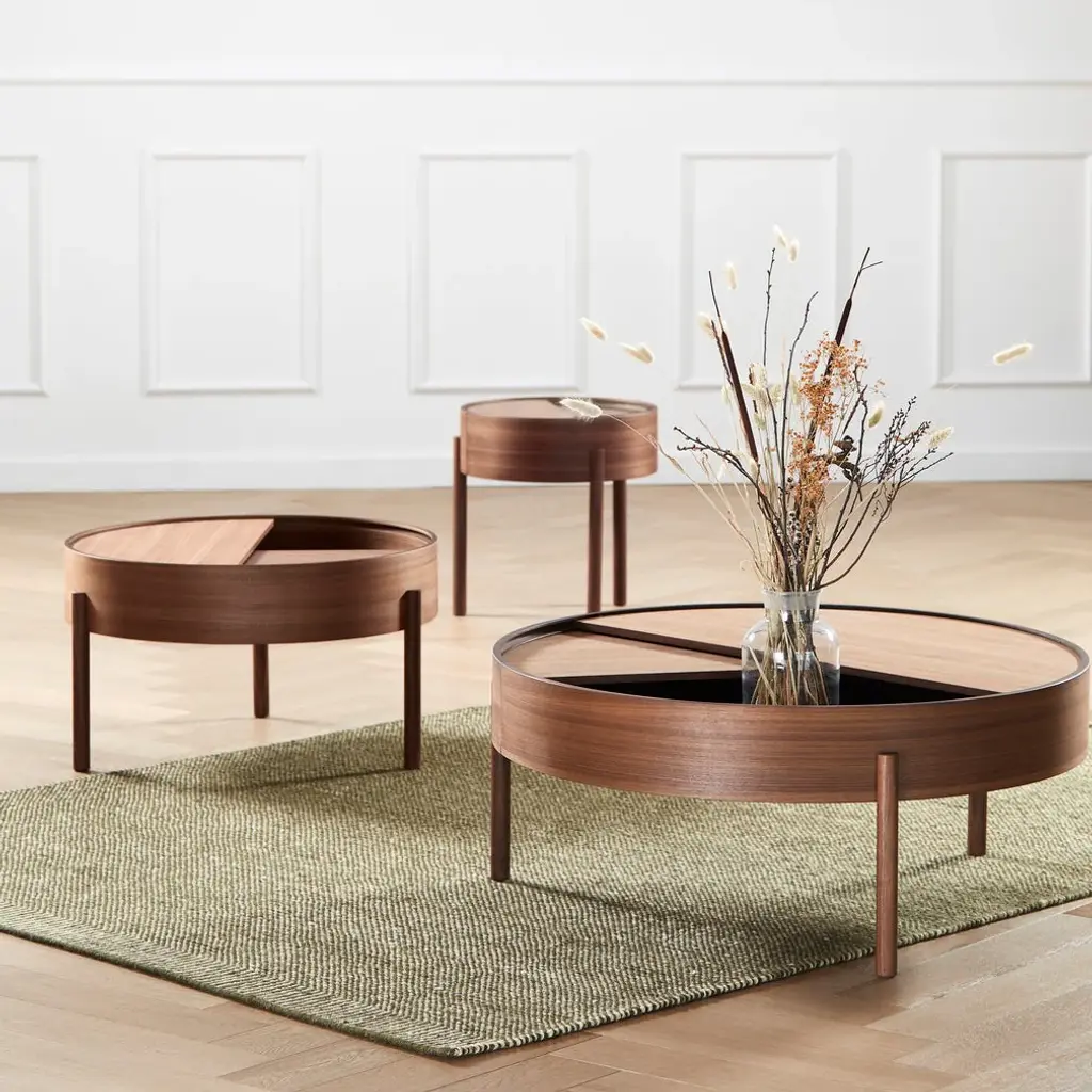 Created by Danes Ditte Vad and Julie Begtrup, this elegant Scandinavian coffee table is a study in smooth curves and clever, geometric design. Turn the tabletop to showcase cherished objects or close the lid to conceal clutter. A stunning piece for warm, contemporary spaces. Crafted in FSC®-certified wood. Available in 26” and 35”. Choose from Oiled Oak and White Pigmented Oak finishes.