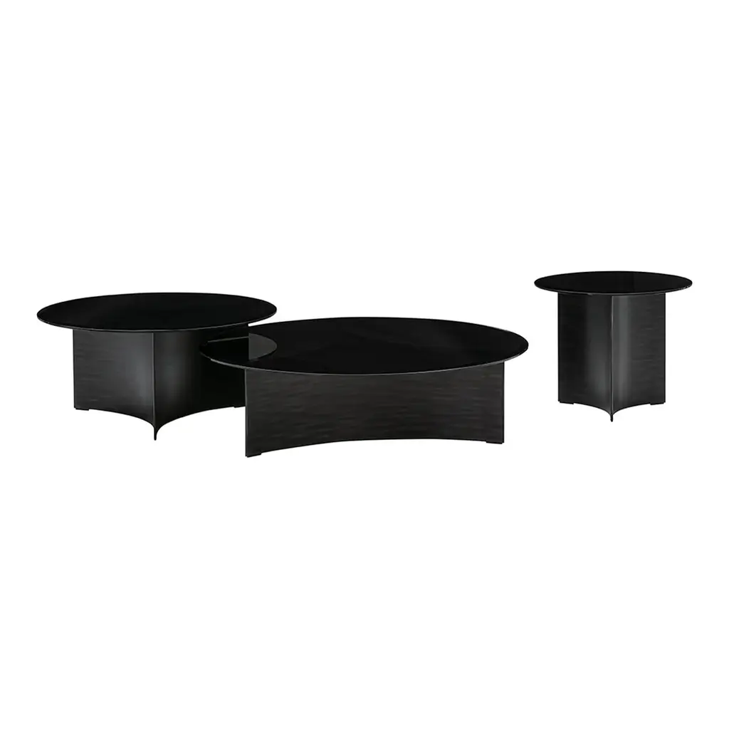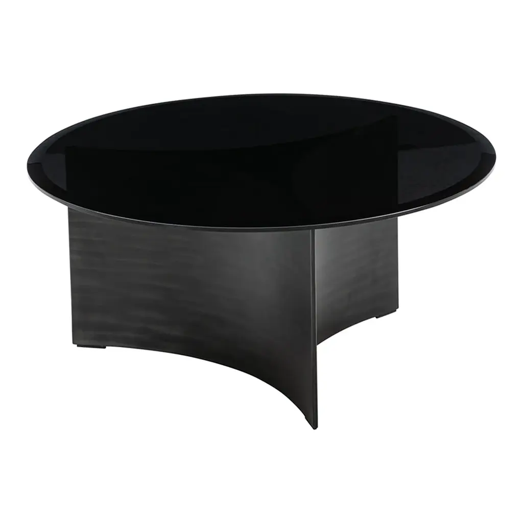 The Arc Coffee Table, designed by acclaimed designer Toan Nguyen for Wendelbo, transforms basic geometric principles into a sculptural centerpiece that defies conventional furniture classifications. This extraordinary piece creates a mesmerizing visual dialogue between presence and absence, where negative space becomes as important as physical form. Available in three precisely calibrated sizessmall (19.7" diameter × 16.1" height), medium (29.5" diameter × 13.6" height), and large (39.4" diameter × 11" height)the Arc collection offers graduated proportions that can be arranged individually or as nested compositions to create dynamic interior landscapes. The dimensional progression follows a thoughtful inverse relationship between diameter and height, ensuring each size maintains its distinctive character while harmonizing with the others. What distinguishes the Arc from ordinary coffee tables is its masterful material contrast. The substantial cylindrical base, crafted from either black patinated steel or brass patinated steel, appears to have been sculpted by removing material rather than adding it. This creates a compelling negative space that transforms the base from a solid mass into an architectural form defined by its contours and voids. The floating glass tabletopavailable in either sophisticated black or rich tinted browncompletes this visual narrative by simultaneously concealing and revealing the base beneath. The translucent surface creates a captivating interplay of light, allowing glimpses of the sculptural foundation while reflecting its surroundings in subtle, shifting patterns. Nguyen's background in both auteur design and industrial production is evident in how the Arc balances artistic expression with flawless execution. Each material has been selected not only for its aesthetic contribution but also for its functional performance, creating a piece that serves as both a practical surface and a conversation-starting design statement. Whether positioned as a solitary focal point or arranged in complementary groupings, the Arc Coffee Table exemplifies Wendelbo's commitment to creating furniture that transcends utilitarian requirements to become an integral element of thoughtful interior architecture.