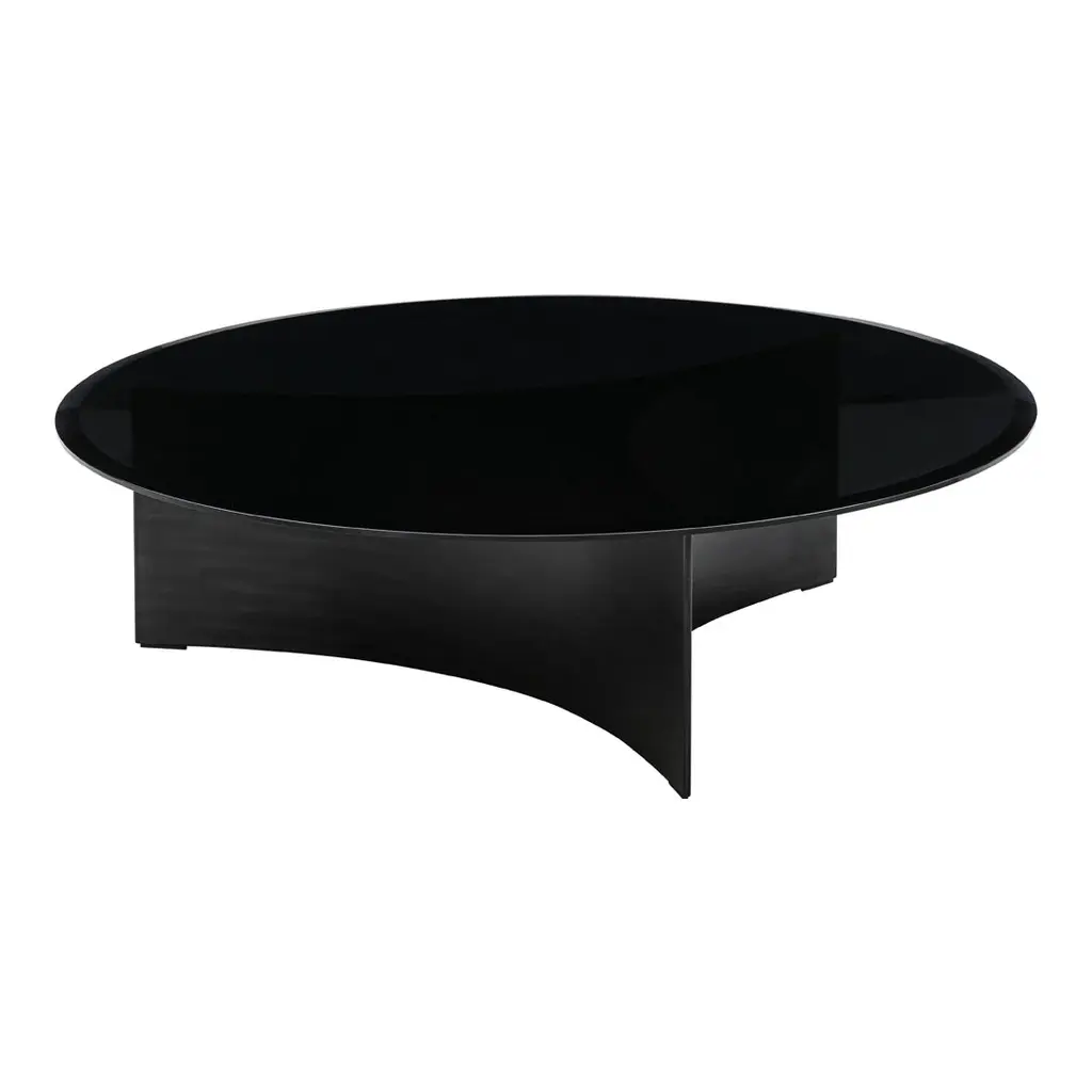 The Arc Coffee Table, designed by acclaimed designer Toan Nguyen for Wendelbo, transforms basic geometric principles into a sculptural centerpiece that defies conventional furniture classifications. This extraordinary piece creates a mesmerizing visual dialogue between presence and absence, where negative space becomes as important as physical form. Available in three precisely calibrated sizessmall (19.7" diameter × 16.1" height), medium (29.5" diameter × 13.6" height), and large (39.4" diameter × 11" height)the Arc collection offers graduated proportions that can be arranged individually or as nested compositions to create dynamic interior landscapes. The dimensional progression follows a thoughtful inverse relationship between diameter and height, ensuring each size maintains its distinctive character while harmonizing with the others. What distinguishes the Arc from ordinary coffee tables is its masterful material contrast. The substantial cylindrical base, crafted from either black patinated steel or brass patinated steel, appears to have been sculpted by removing material rather than adding it. This creates a compelling negative space that transforms the base from a solid mass into an architectural form defined by its contours and voids. The floating glass tabletopavailable in either sophisticated black or rich tinted browncompletes this visual narrative by simultaneously concealing and revealing the base beneath. The translucent surface creates a captivating interplay of light, allowing glimpses of the sculptural foundation while reflecting its surroundings in subtle, shifting patterns. Nguyen's background in both auteur design and industrial production is evident in how the Arc balances artistic expression with flawless execution. Each material has been selected not only for its aesthetic contribution but also for its functional performance, creating a piece that serves as both a practical surface and a conversation-starting design statement. Whether positioned as a solitary focal point or arranged in complementary groupings, the Arc Coffee Table exemplifies Wendelbo's commitment to creating furniture that transcends utilitarian requirements to become an integral element of thoughtful interior architecture.