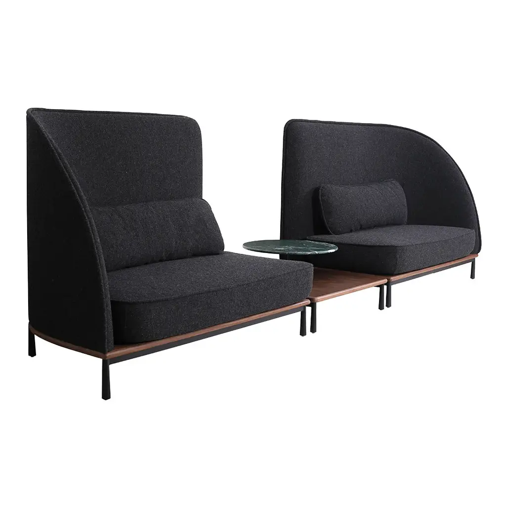 The Arc collection is a response to the modern work situation, which the designer wanted it to provide the shelter and remind people of home. The designer gave this collection a distinct character and made it stand out from typical contract furniture. The soft silhouette of the sofa strengthens the instantly recognizable character. A thick seam sweeps along the edge of the sofa, like a barrier between the strict and straight outside shape, and the softer sculpted inside. With embracing curves and intricate upholstery details, the Arc collection has a gentle character that makes it the perfect for both retail and soft contract market.