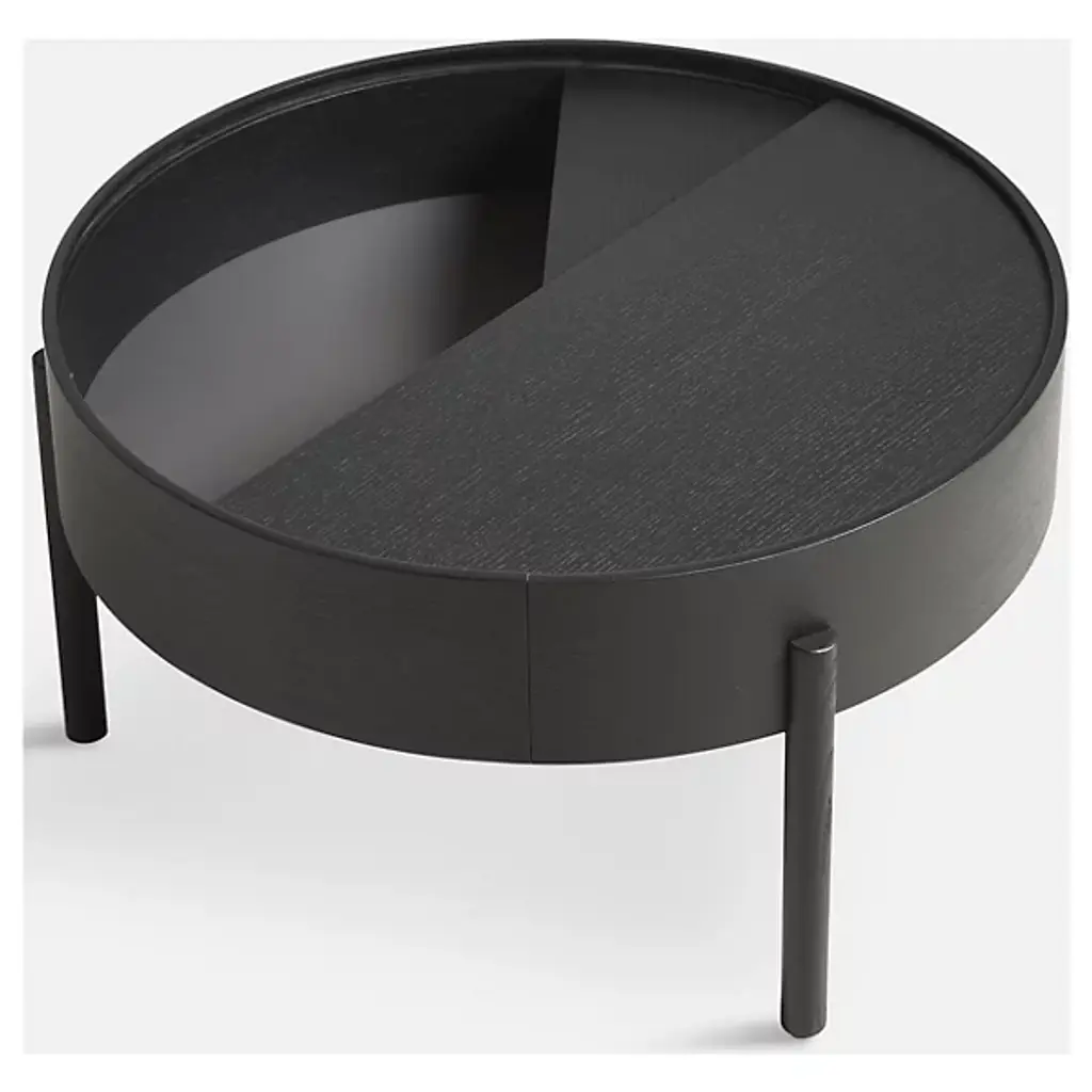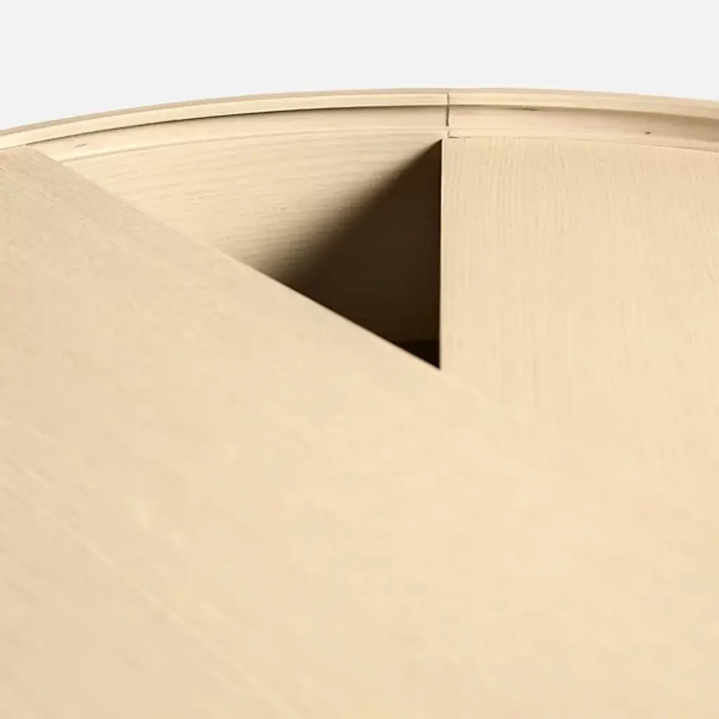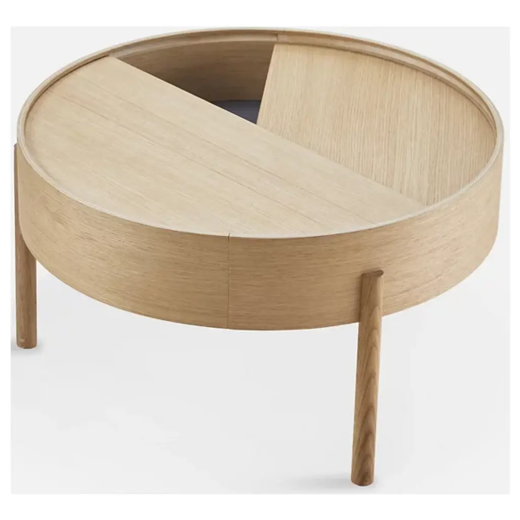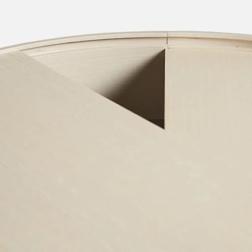 Presented by Woud and designed by Danish talents Ditte Vad and Julie Begtrup, the Arc Coffee Table is a rustic modern and contemporary composition. Made in Latvia, it features a round, wooden bodice and deep storage capability within the center. A sliding top allows for infinitely versatile arrangement possibilities. You can completely close the Arc to conceal what’s inside or strategically keep a portion of it open to reveal pieces of choice.