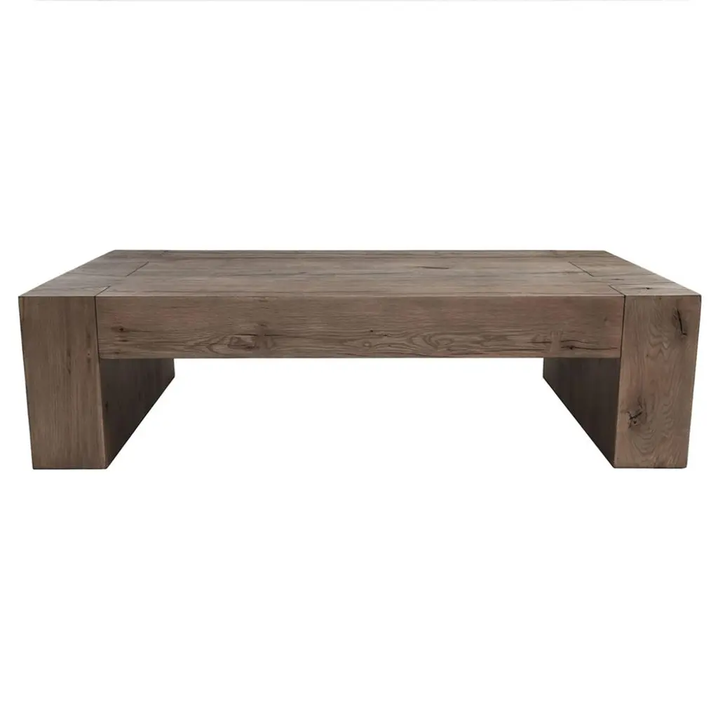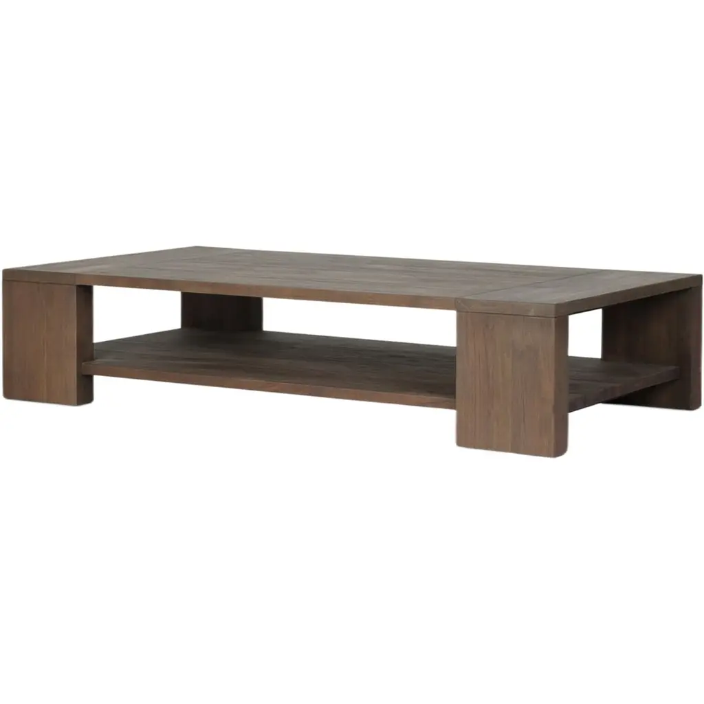 Made of solid hardwood, the Arcadia coffee talbe features thru legs and a wrapped edge to create a thicker top.