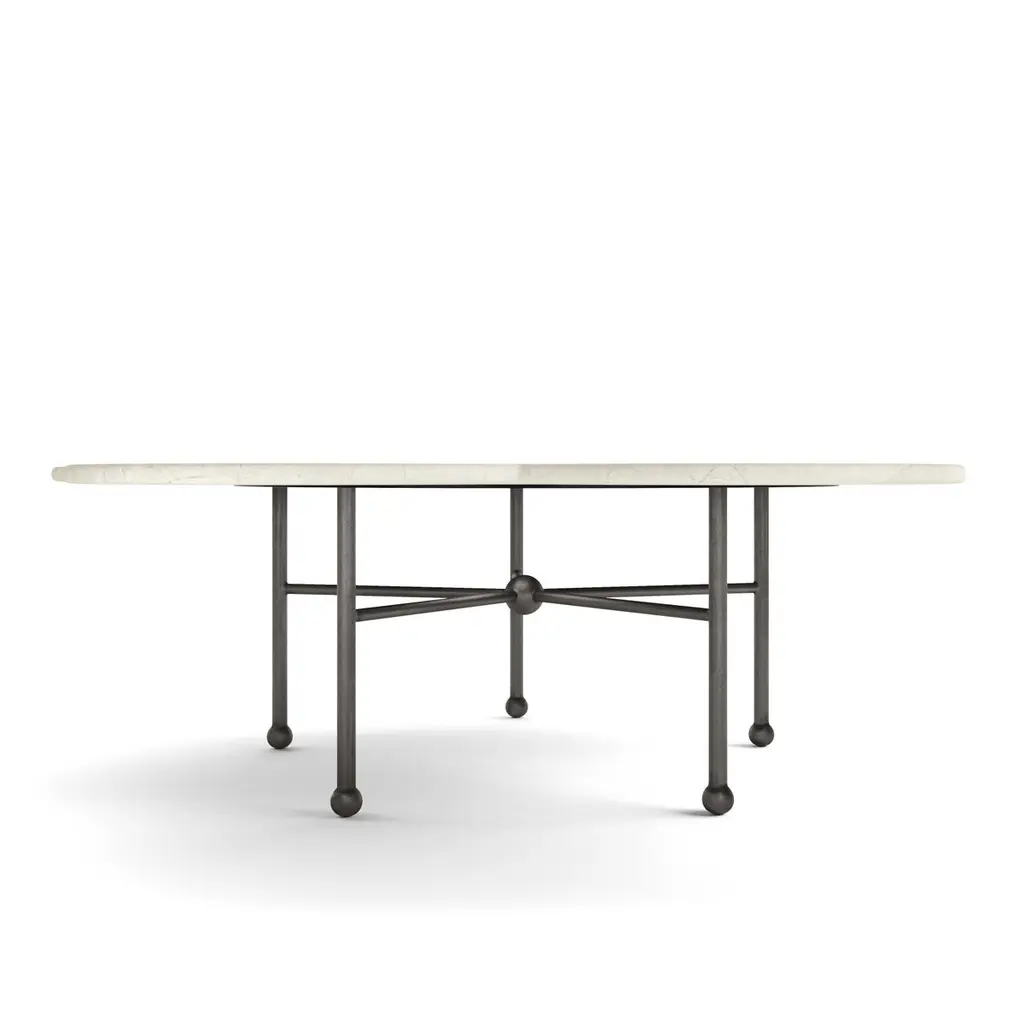 Blackened brass pairs with curvilinear Crema marble in our showstopping Archer Table. Statement essentials make everyday life special & our Archer Table is a room-changer. We love this table in a laidback setting, imparting casual elegance with a touch of whimsy. We always return to nature and this playful form is an abstraction of the pretty petals our frisky pup Archer loves to sniff. Its distinctive shape is combined with honed marble and aged brass. If you like a living finish as much as we do, try this piece outdoors—the hand-aged brass develops a lovely patina over time.Dimensions: 45.5”DIA x 15”HAll of our pieces are Benchmade in Los Angeles by local artisans. Current lead time: 16 - 22 weeks + transit time. Enquire about customizations, alternate materials & finishes. Cover available if intended for outdoor use, upon request.Shown here in our Crema Marble with a Blackened Brass base. Marble - Available in Crema Marble, Ceppo Grey Marble, Rojo Marble, and Nero Marble.Brass - Available in Blackened Brass, Polished Brass and Hand-Aged Brass. All our brass finish options are living finishes intended to deepen and patina more over time.Please note: Natural stone can have a substantial variation, as well as natural imperfections; this is part of its beauty and is what makes each piece unique. Hand-aged finishes may be slightly different from one item to the next. All of our metal finishes are living finishes that may darken or patina with time, depending upon the final use and environment. An outdoor furniture cover can be quoted upon request.About August Abode:August Abode is a moving portrait of California life, an invitation to reconnect with the allure of nature to enhance our everyday lives. Founded in Los Angeles in 2019 by designer Stefani Stein, August Abode is an artisanmade home collection capturing the West Coast spirit of endless summer. We make relaxed and refined statement essentials inspired by the beauty of living in the Golden State.Through observation and abstraction of nature, we design furniture and wallcoverings in which form, function, and fine craftsmanship have the ability to positively impact our everyday lives through our homes. We are committed to making responsibly, not overproducing. Our view is to make future heirlooms. Discouraged by the impact of Los Angeles landfills being the largest in the county, we aim to reduce our participation in the epidemic of thoughtless production. Our made-to-order pieces encourage a steady flow of business to LA’s rich artisan trade community while keeping our production process local and environmentally ethical. We are investing in the next generation of skilled makers, to encourage a sustainable and vertical model that reduces wasteful production.