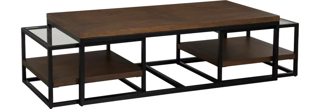 Our Archer rectangular coffee table is crafted with a gorgeous macchiato finish, acacia veneers and a metal base in an antique bronze finish for a touch of chic, contemporary style. Bunch this coffee table with a second Archer rectangular coffee table to expand your look.