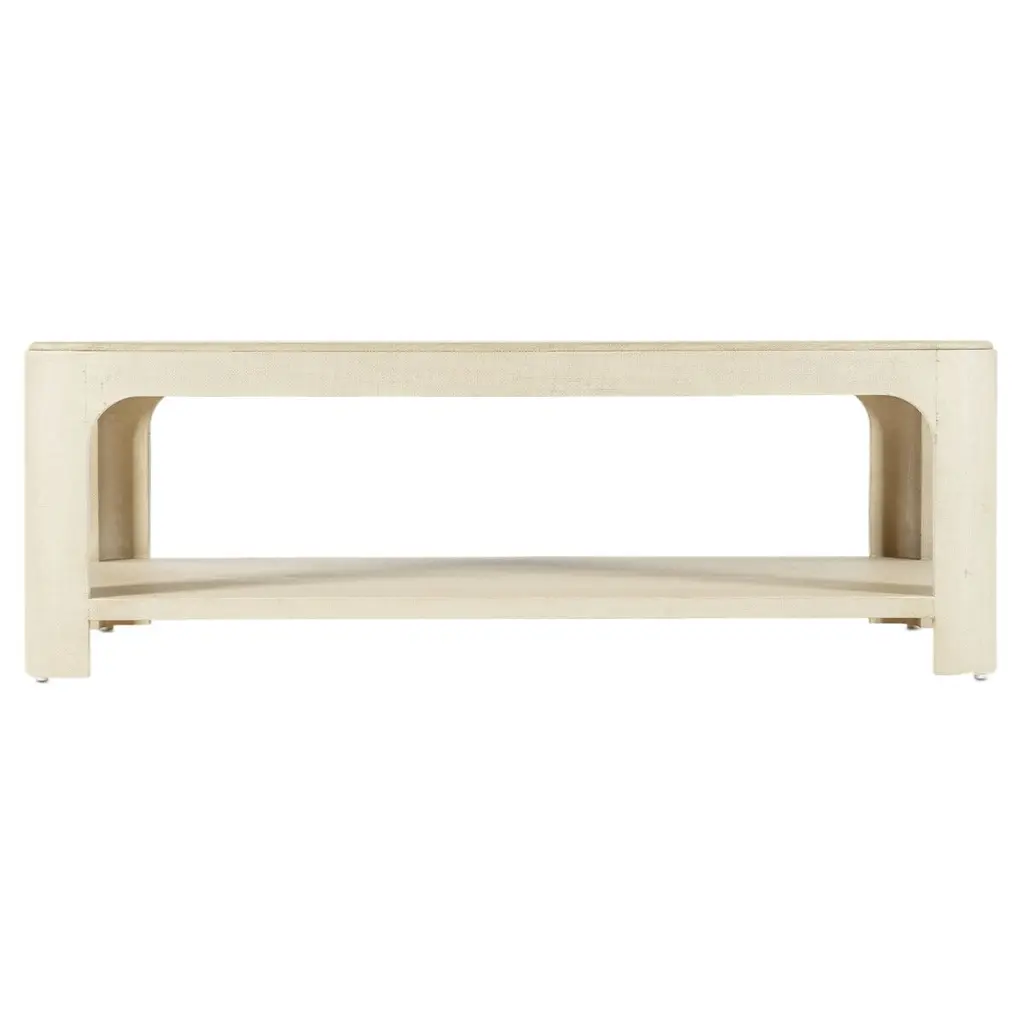 The Raffia Rectangle Cocktail Table brings a coastal-inspired elegance to any living room. Wrapped in raffia with woven-cane elements, the table features a refined finish that adds texture and depth. With its sturdy wooden frame and fixed lower shelf, this rectangular coffee table blends functional storage with stylish design. Ideal for interiors that value timeless materials and a sense of natural luxury, this piece is perfect for creating a relaxed, yet sophisticated atmosphere.