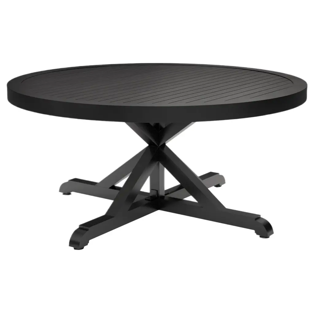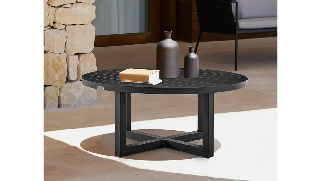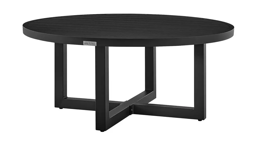 The Argiope round coffee table is a great addition to any backyard, patio space, pool side, or screened in porch. This outdoor coffee table measures 42 inches in diameter and 18 inches tall it's unique cross leg base creates a sturdy and solid foundation. The size makes it ideal for parties as there's enough surface space for many guests to set down a drink or plate. The slatted tabletop design creates a drain effect that allows for the outdoor elements to easily pass through. The aluminum construction is durable and stylish. Some outdoor furniture made of wood, iron, or steel, can be difficult to move around because of its weight. If you are looking for something light, then aluminum makes for a great option! If you need to redecorate your outdoor living space, or if you are moving to a different location, then you will have no problems in terms of moving your aluminum patio furniture. Minimal maintenance is required for this coffee table. Often, using a typical garden hose to rinse off the patio furniture will do. For more stubborn residue, a little warm water and soap will usually suffice. Aluminum furniture cannot rust. This is especially beneficial in areas where moisture is present, making it a premium choice among residents of coastal cities or regions with high humidity. The Argiope outdoor coffee table is available in a black or gray aluminum finish.
