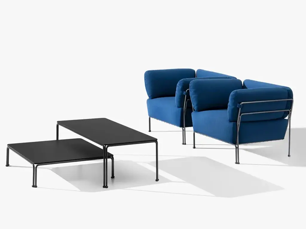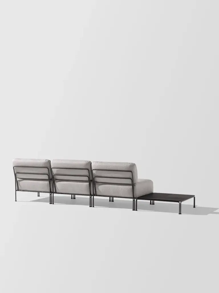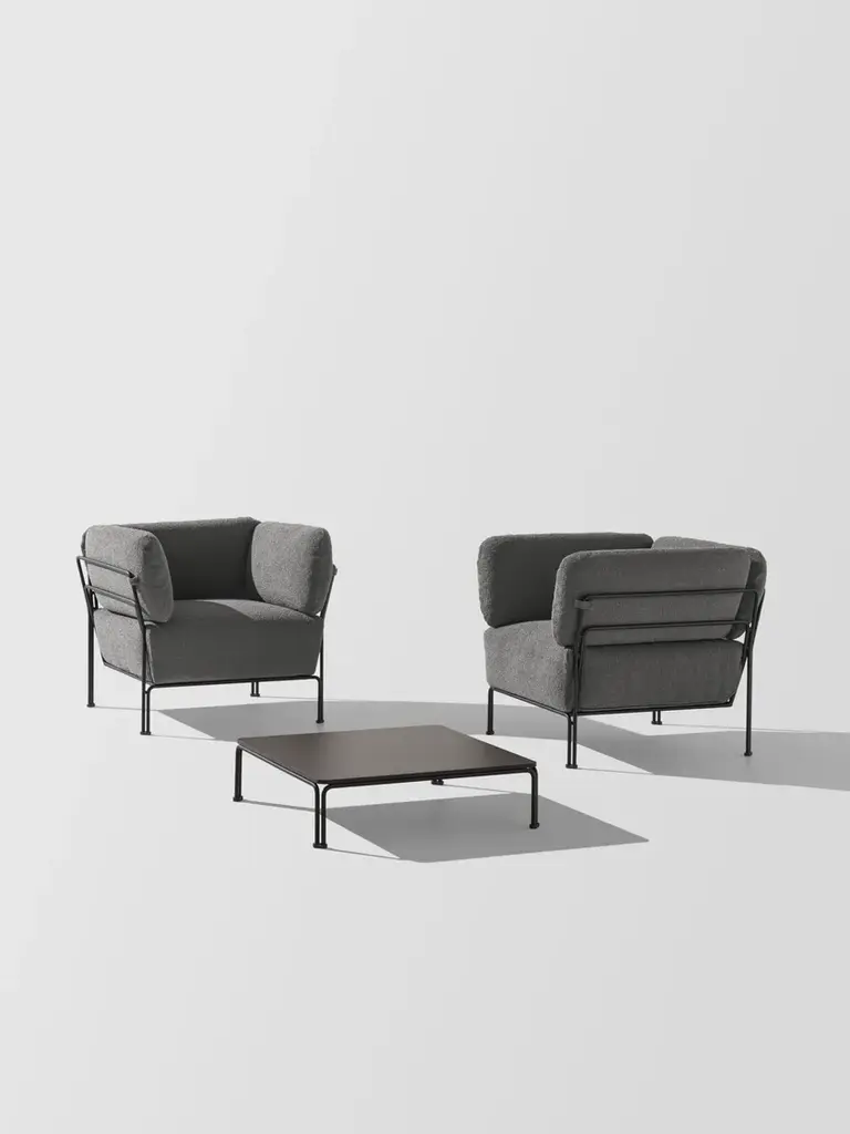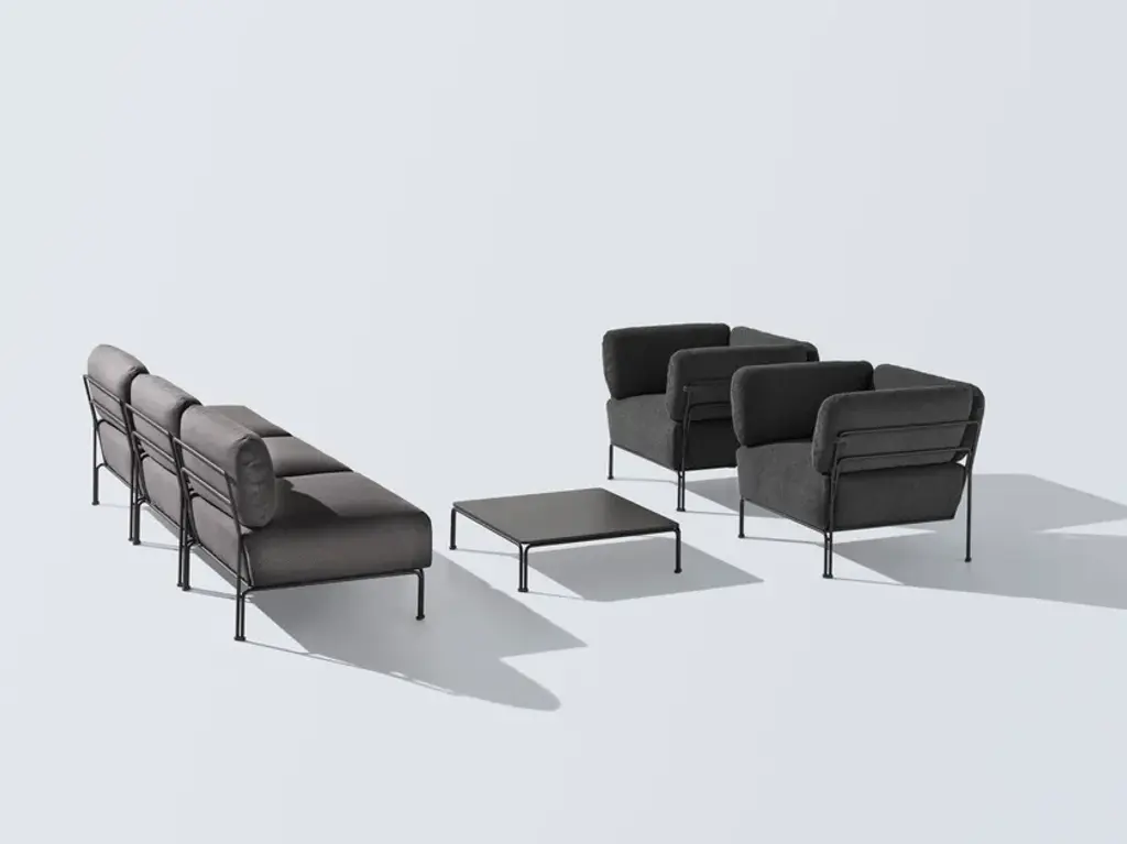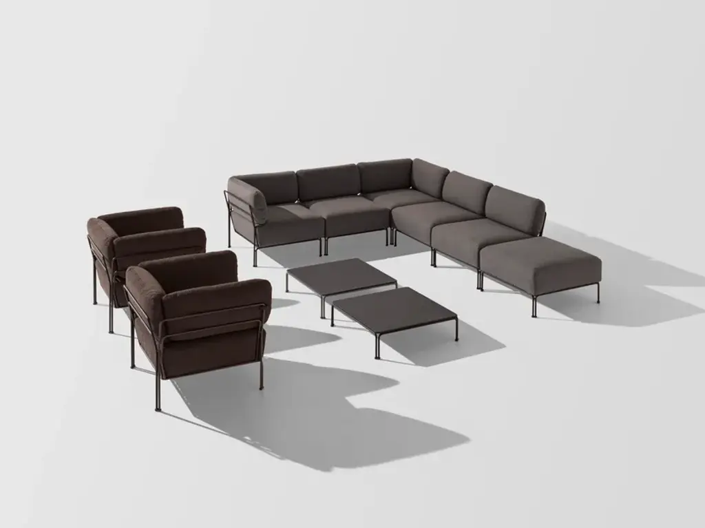 Ari is a coffee table h19, top 70x70.Timeless elegance in the Ari outdoor seating range, designed by the French designer Philippe Nigro. Inspired by natural beauty, the seats are born from a modular system that allows to create various types of compositions in a perfect balance of sobriety and comfort. Equipped with large, comfortable cushions, Ari is an ode to relax and well-being in the open air. Multiple seating system with steel rod frame. Upholstered seats, backrests and armrests. Available in indoor and outdoor versions.