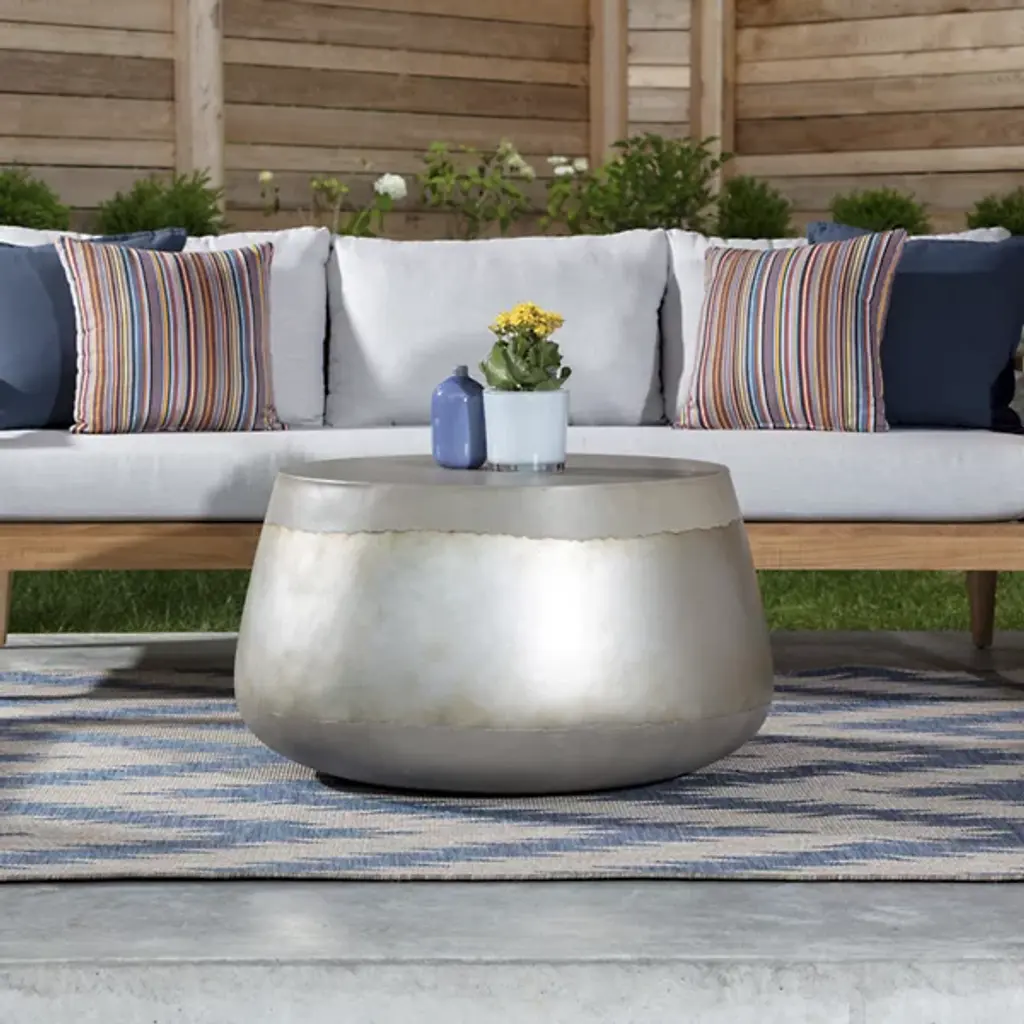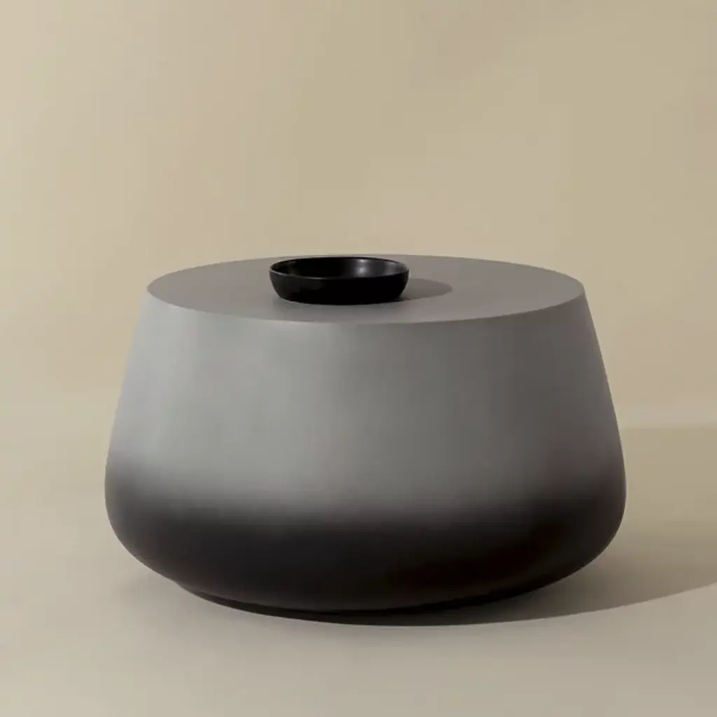 The Aries Outdoor Coffee Table from Sunpan demonstrates how industrial materials can be transformed into refined outdoor furnishings. Glass-reinforced concrete construction offers remarkable sturdiness for year-round outdoor placement. The drum-shaped design introduces architectural interest while maintaining functionality. A specialized topcoat shields against moisture and staining, ensuring longevity. Each piece exhibits unique characteristics inherent to concrete craftsmanship – subtle variations that make every table distinctive.