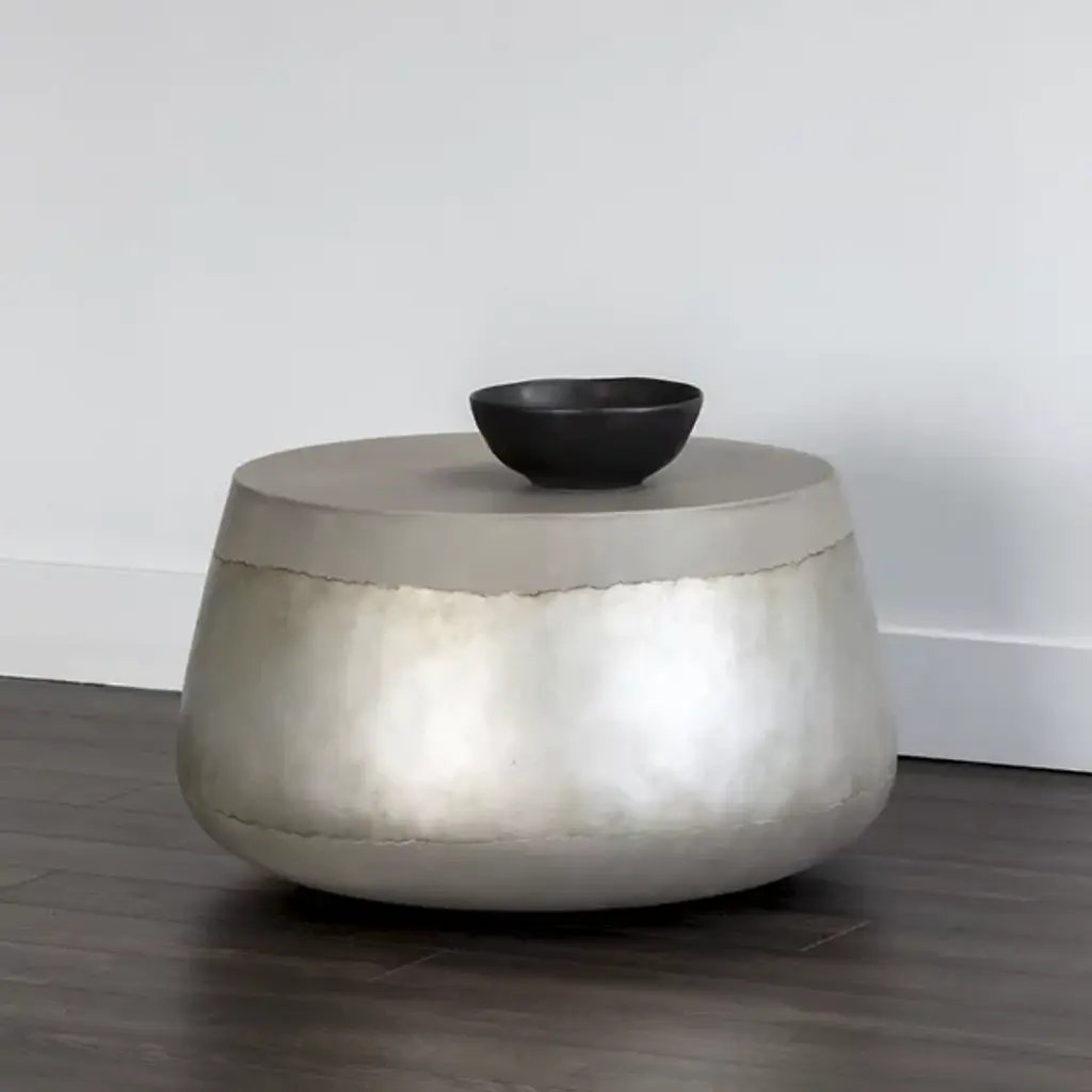 The Aries Outdoor Coffee Table from Sunpan demonstrates how industrial materials can be transformed into refined outdoor furnishings. Glass-reinforced concrete construction offers remarkable sturdiness for year-round outdoor placement. The drum-shaped design introduces architectural interest while maintaining functionality. A specialized topcoat shields against moisture and staining, ensuring longevity. Each piece exhibits unique characteristics inherent to concrete craftsmanship – subtle variations that make every table distinctive.