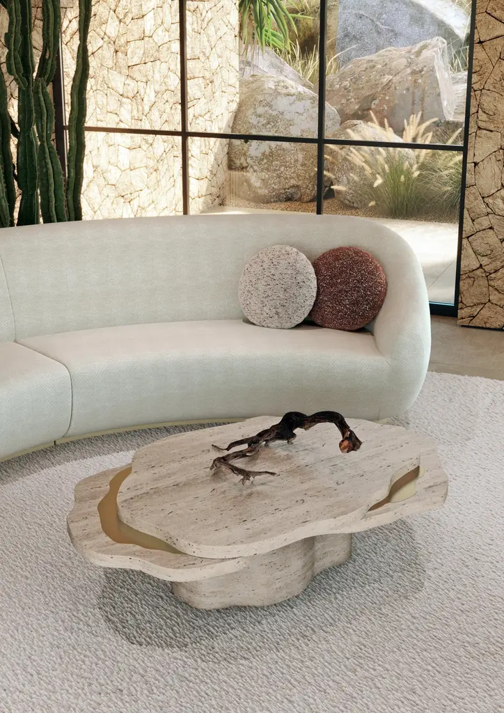 Arizona Coffee Table, Travertine Stone, Insidherland By Joana Santos Barbosa