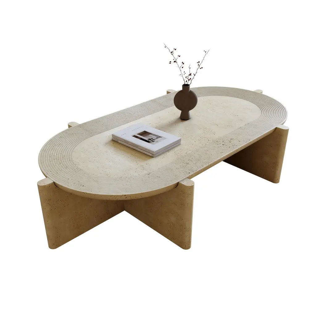 Arkhe Oval No. 4 Travertine Coffee Table By Studio Kali