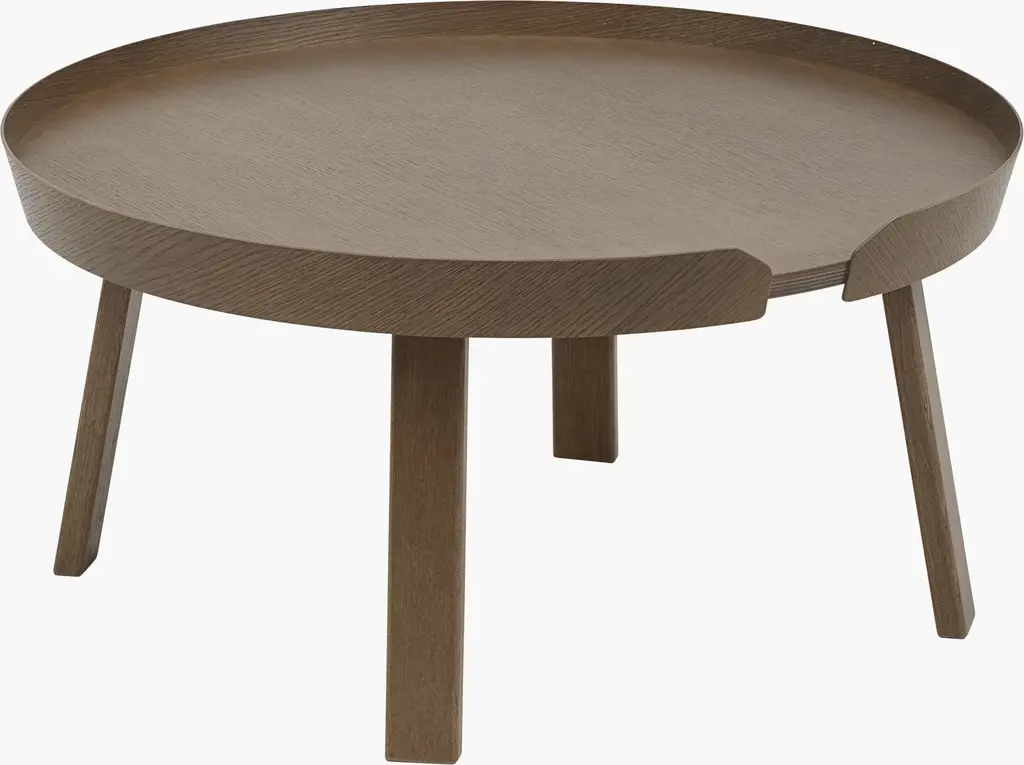 The Around Coffee Table (2011) offers a new perspective through the wooden veneer lip that runs along the edge of its tabletop, keeping items from rolling away. The lip includes a small gap for easy cleaning of the tabletop. This playful table can be used in any living room, lounge setting, lobby area, or hotel room. Made in Latvia.