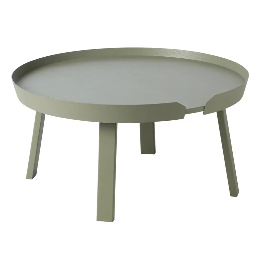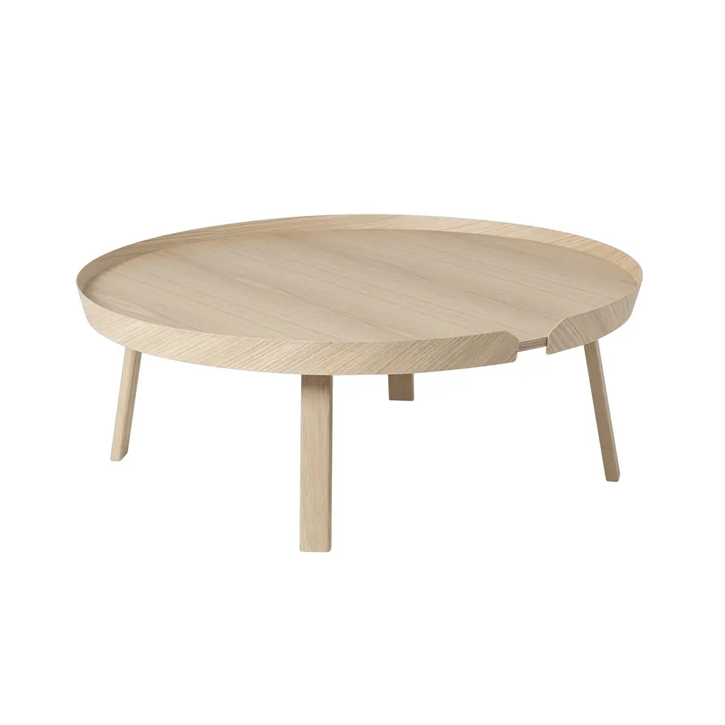 Sizing things up, designer Thomas Bentzen offers an outsize version of his charmingly naïf Around Coffee Table for Danish brand Muuto. Scandinavian design takes a lighthearted turn in his signature round tabletop rimmed with a strip of bent wood. Durable lacquer finish in natural oak or a selection of strikingly cool colorways.
