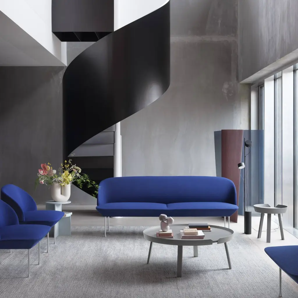Sizing things up, designer Thomas Bentzen offers an outsize version of his charmingly naïf Around Coffee Table for Danish brand Muuto. Scandinavian design takes a lighthearted turn in his signature round tabletop rimmed with a strip of bent wood. Durable lacquer finish in natural oak or a selection of strikingly cool colorways.