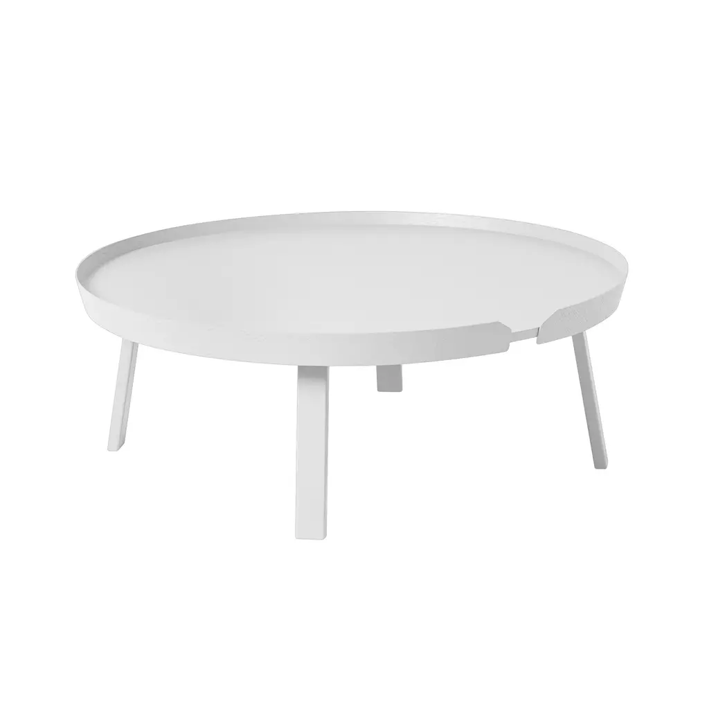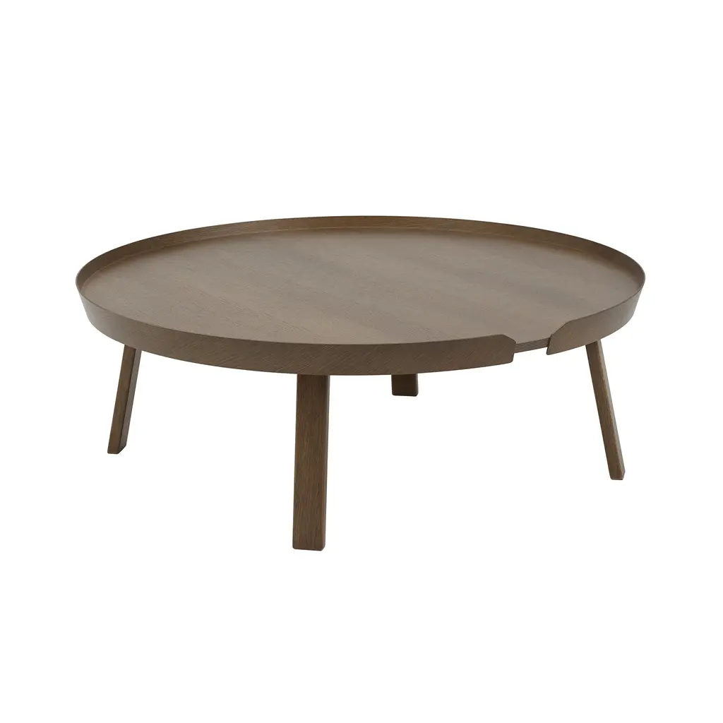 Sizing things up, designer Thomas Bentzen offers an outsize version of his charmingly naïf Around Coffee Table for Danish brand Muuto. Scandinavian design takes a lighthearted turn in his signature round tabletop rimmed with a strip of bent wood. Durable lacquer finish in natural oak or a selection of strikingly cool colorways.