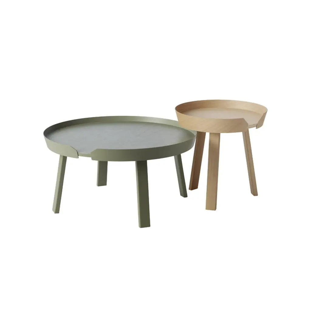 Muuto's Around is a delightful wooden coffee table designed by Thomas Bentzen. The Around table combines a stylish appearance with a functional and simple design. Designer Thomas Bentzen wanted to create a friendly, stable and durable table that keeps the coffee cup from falling on the floor – that's why he created a small edge around the tabletop. As its name suggests, the Around table invites people to gather around it wherever you place it. Different sizes of the table pair together easily and also look great by themselves.