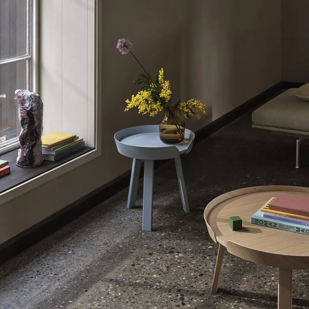 Solo or in a group (mix with the larger version, also at A+R), the sturdy Around Coffee Table strikes a balance between the honesty of Scandinavian design tradition and a charmingly modern flair. The distinct silhouette is realized by specific material application: the frame edge is ash plywood; tabletop made from plywood and legs are solid ash. Designer Thomas Bentzen sought a style that was both friendly and graceful; we'll add joyful to the mix with the addition of the pop of yellow available as an option.A former designer at the celebrated Louise Campell Studio, Thomas set out on his own in 2010 as well as co-founded the design collective Remove. He realized thee Around Coffee Duo for Danish brand Muuto.