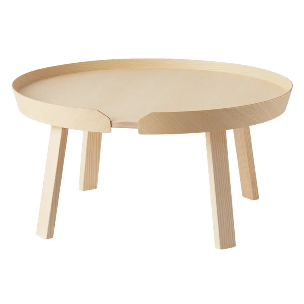 Muuto's Around is a delightful wooden coffee table designed by Thomas Bentzen. The Around table combines a stylish appearance with a functional and simple design. Designer Thomas Bentzen wanted to create a friendly, stable and durable table that keeps the coffee cup from falling on the floor – that's why he created a small edge around the tabletop. As its name suggests, the Around table invites people to gather around it wherever you place it. Different sizes of the table pair together easily and also look great by themselves.