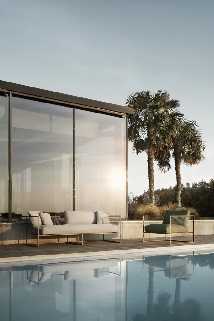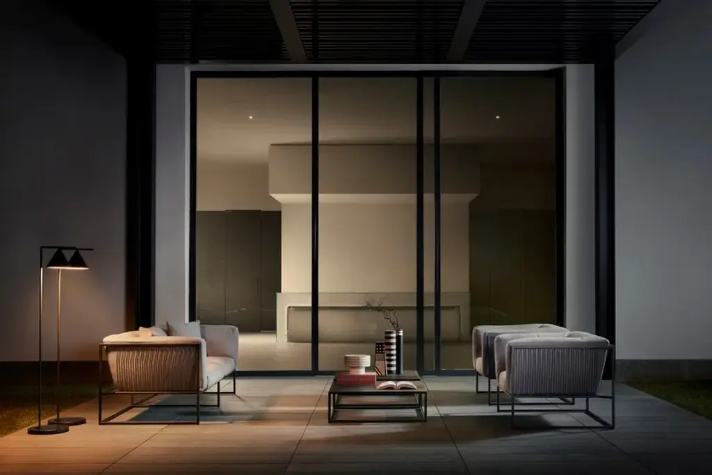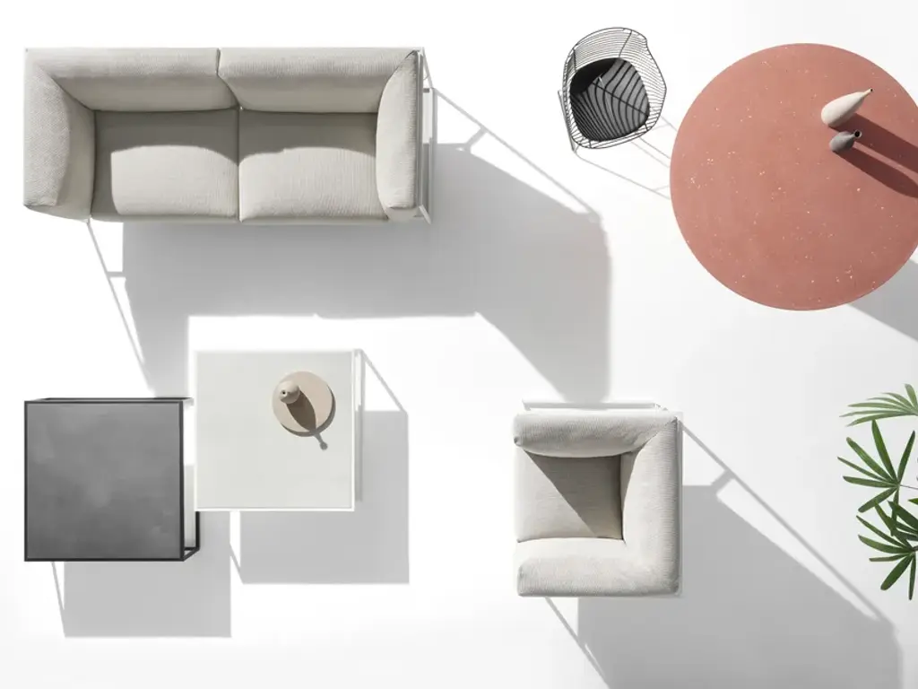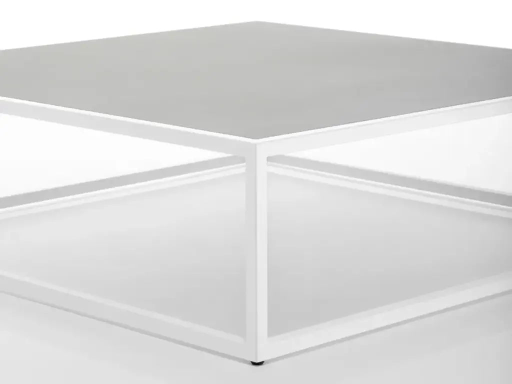 Arpa collection Indoor/outdoor low table.Side table structureLoadbearing structure in stainless steel, 2 x 2 cm section, epoxy powder coated using specific treatment for outdoor use in the matt goffered finish, in white, corten and black iron colours. Top made of fine porcelain stoneware laminate, matt variations in light grey or black calce and natural satin-finished corten.AccessoriesProtective rain cover in light gray color, specifically for outdoor products, waterproof, made of 100% polyester, outside with acrylic coating, inside with acrylic resin coating.Its characteristics are emphasised by its fully fungicidal Teflon finish. Each rain cover comes with a closable slip cover, so that it can be folded and kept correctly when not in use.Use and maintenance of protective rain coverFor correct washing, use a delicate neutral soap and water, and rinse thoroughly after washing, using only water.After cleaning, allow the fabric to dry correctly before folding it and putting it away, to avoid it getting mouldy.Strength:Tensile strength: warp: 125 DaN/5 cm - weft: 120 DaN/5 cmTear strength: warp: 2.5 DaN - weft: 2,5 DaN/5 cmLight resistance: level 6/8Heat resistance: +70°CCold resistance: -30°CColumn of water: approx 1000 mmAs the name suggests, the Arpa collection is based on the harp, one of the most beautiful and captivating musical instruments.Unlike the meticulous work involved in manufacturing a harp, in designing this collection, rigorous paring down was applied, resolving each piece with the least possible number of elements.Arpa combines the stability of the outer orthogonal structure, with the comfort and softness of the inside cushion. The refined cords add elegance and delicacy to each element in the range, giving a sensation of lightness, as if the entire upholstering was floating, suspended by its structure.Designed to be timeless, Arpa is meant to become iconic, not only for aesthetic reasons, but also due to functionality and comfort.Sofa, armchair, pouf and modules framesBackrest and seat loadbearing structure in stainless steel, 2 x 2 cm section, epoxy powder coated using specific treatment for outdoor use in the matt goffered finish, in white, corten and black iron colours. The black iron paint finish has a cloudy effect, a feature and peculiarity of this particular finish.The seat frame has elastic straps, specifically for outdoor use. The backrest frame is woven by hand using high tensile polyester cord, in mass pigmented colour, able to guarantee high resistance to weather, abrasion, limited elongation, and colour fastness. The seats are made with original, exclusive weaving. Cushions and coveringSeat cushion with insert in non-deformable dual density polyurethane for greater comfort. Filled with padding in polyester fibre and viscoelastic polyurethane memory foam chips to improve the support offered by the padded seats and backs. Fixed cover in polyester fibre bonded with water- repellent canvas that seals the cushion and makes it completely waterproof.Back cushion with insert in non-deformable dual density polyurethane for greater comfort. Filled with padding in polyester fibre. Fixed cover in polyester fibre bonded with water-repellent canvas that seals the cushion and makes it completely waterproof.The cushion’s special composition gives the padding natural softness and elasticity, making it durable and extremely comfortable. The cushions are completely upholstered with removable fabric covers. Possibility of purchasing additional cover upholstery. For fabric characteristics, please see the technical section at the end of the price list. This particular composition of the cushion gives the padding natural softness and elasticity, a long lifespan and great comfort.