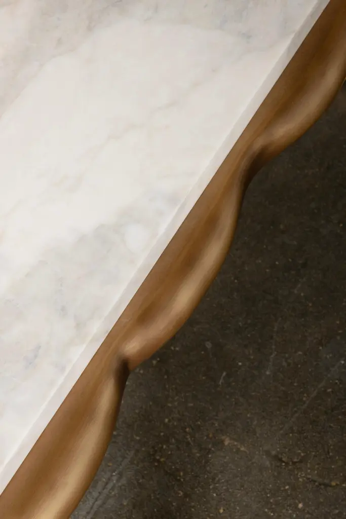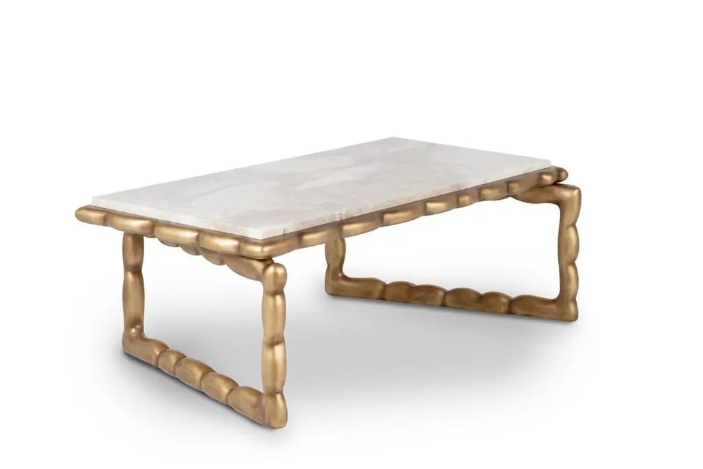 Stone Coffee Table, Modern Collection, Handcrafted in Portugal - EuropeStone coffee table lives up to its name featuring an exuberant stone texture with beautiful, intricate veins.The contrast between tabletop in Calacatta Cremo marble and the brown-gold bronze powder lacquered wood produces a striking combination.Stone Coffee Table Material CodesFI116 Brown-gold bronze powder with a patina effect; eggshell finishST010 Calacatta Cremo marble; polishedHandcrafted in Portugal - Europe by GreenappleUnique by design, Crafted by peopleFounded in 2005 by Sérgio Rebola and Rute Martins, Greenapple designs and produces in-house luxury furniture for exclusive customers worldwide.Our own in-house production facility allows us to be obsessed with detail, and gives us the freedom to dedicate ourselves to the most demanding tailor-made and customized work. As Rute designs all the unique pieces, Sérgio assures the high-quality standards through the whole process - from design to production; from production to your home. Fine craftsmanship, whether perfected by experienced hands or state-of-the-art machinery is quintessential in delivering top quality experiences.