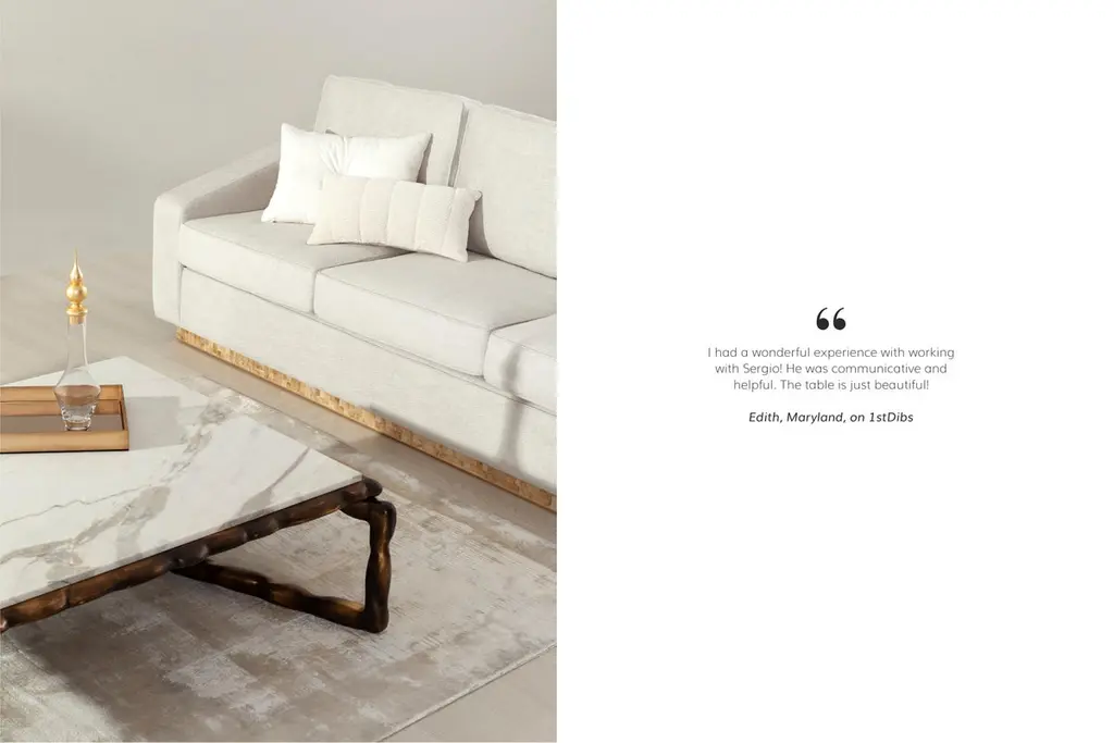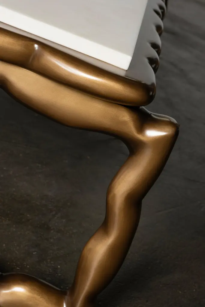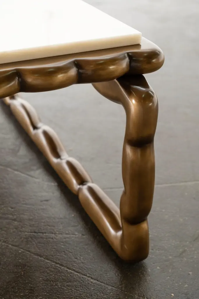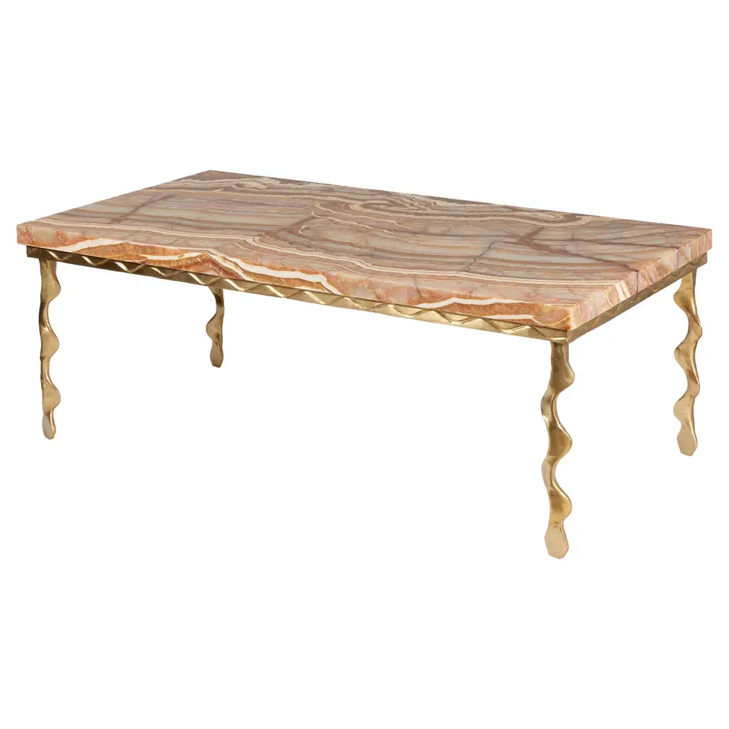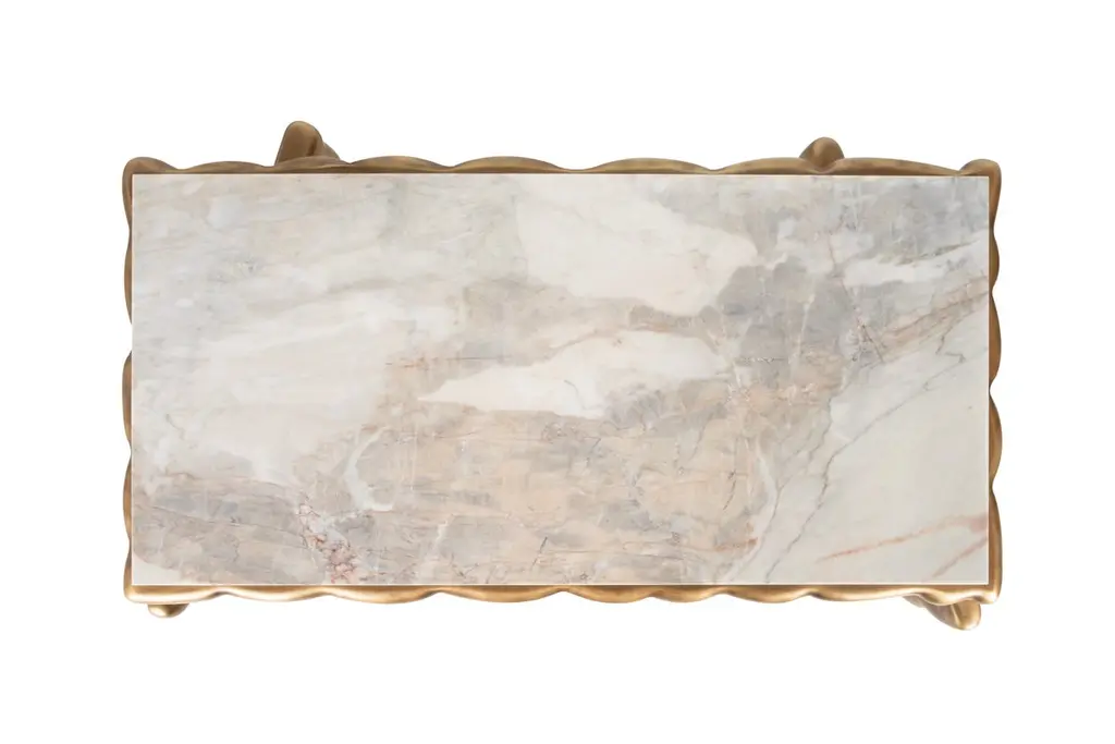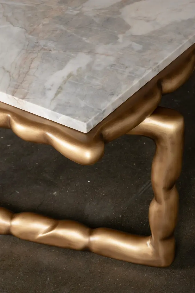 Stone Coffee Table, Modern Collection, Handcrafted in Portugal Stone coffee table lives up to its name featuring an exuberant stone texture with beautiful, intricate veins.The contrast between tabletop in Amethyst stone and the gold bronze powder lacquered wood produces a striking combination.Stone Coffee Table Material CodesFI126 Gold bronze powder with a patina effect; satin finishST085 Amethyst marble; polishedHandcrafted in Portugal - Europe by GreenappleUnique by design, Crafted by peopleFounded in 2005 by Sérgio Rebola and Rute Martins, Greenapple designs and produces in-house luxury furniture for exclusive customers worldwide.Our own in-house production facility allows us to be obsessed with detail, and gives us the freedom to dedicate ourselves to the most demanding tailor-made and customized work. As Rute designs all the unique pieces, Sérgio assures the high-quality standards through the whole process - from design to production; from production to your home. Fine craftsmanship, whether perfected by experienced hands or state-of-the-art machinery is quintessential in delivering top quality experiences.