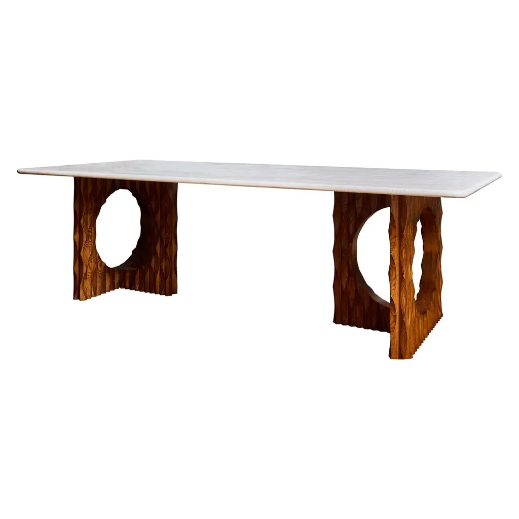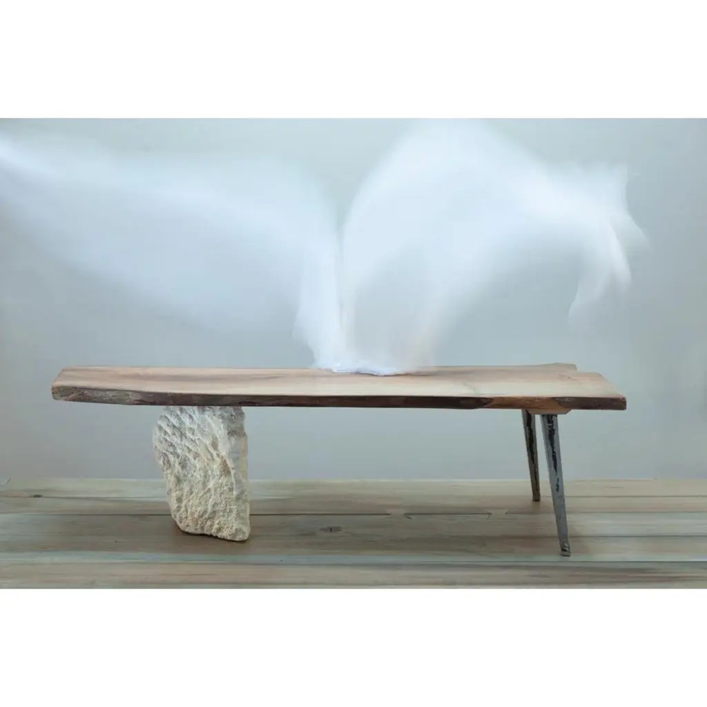 Arte coffee table by Jean-Baptiste Van den HeedeUnique piece signed and numberedDimensions: W 50 x L 145 x H 43 cmMaterials: walnut, metal legs, natural stone Also available: W 30 x L 145 x H 43 cmEach piece of furniture is packed in a wooden box for maximum care.ARTE collection coffee table made in walnut with metal legs or oak legs and natural stone carved by hand.Each piece of furniture is signed and unique for its characteristics such as solid wood and hand carved stone.Jean-Baptiste Van den Heede defines himself as a cabinetmaker-designer and an artist of academic training and family tradition. He has achieved unique designs of national and international prestige and has several awards in avant-garde furniture.Born in Argentina in 1966, from an Argentine mother and a Belgian father. At 5 years of age he and his family moved to Belgium.To train as a wood professional, he first studied 4 years of carpentry. Then he continued training in cabinetmaking and carving for 5 more years. Always in search of contributing something more to his trade, he studied furniture and antique design, culminating this with the study of Sculpture at the Royal Academies of Fine Arts in Liège (Belgium) and graduating with honors.Work the stone, the wood and experience the forge. From the beginning it is directed towards a search for signs, abstract writings and unrealistic figures in analogy with other “Primitive” cultures. He taught drawing and sculpture in Brussels at the private school “la main et l´ esprit” As well as summer courses in Liege (Belgium) “les ateliers d´art contemporain”.In 1995 he went to Barcelona where he taught and investigated the reliefs of different supports such as trees, floors, and especially sewer covers.He searched again analogies between current art and Prehistoric, African art, etc.Participated in several exhibitions both at the artistic level and avant-garde design.In 2002, he moved down to Albacete and then to a town in the province where he still works.It is defined as “a search engine without haste or guidelines.” He says: “I only work when I feel a strong and positive inspiration invade me, an energy that I capture from matter, from the air and that I return doing the work until I feel a connection with it.”Private workshop of contemporary art in Letur (Albacete) until 2009.He currently works in his workshop-studio in the Sierra de Madrid (Guadalix de la Sierra) following his career as a cabinetmaker-designer and artist while teaching his trade to students interested in wood.
