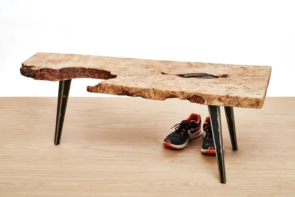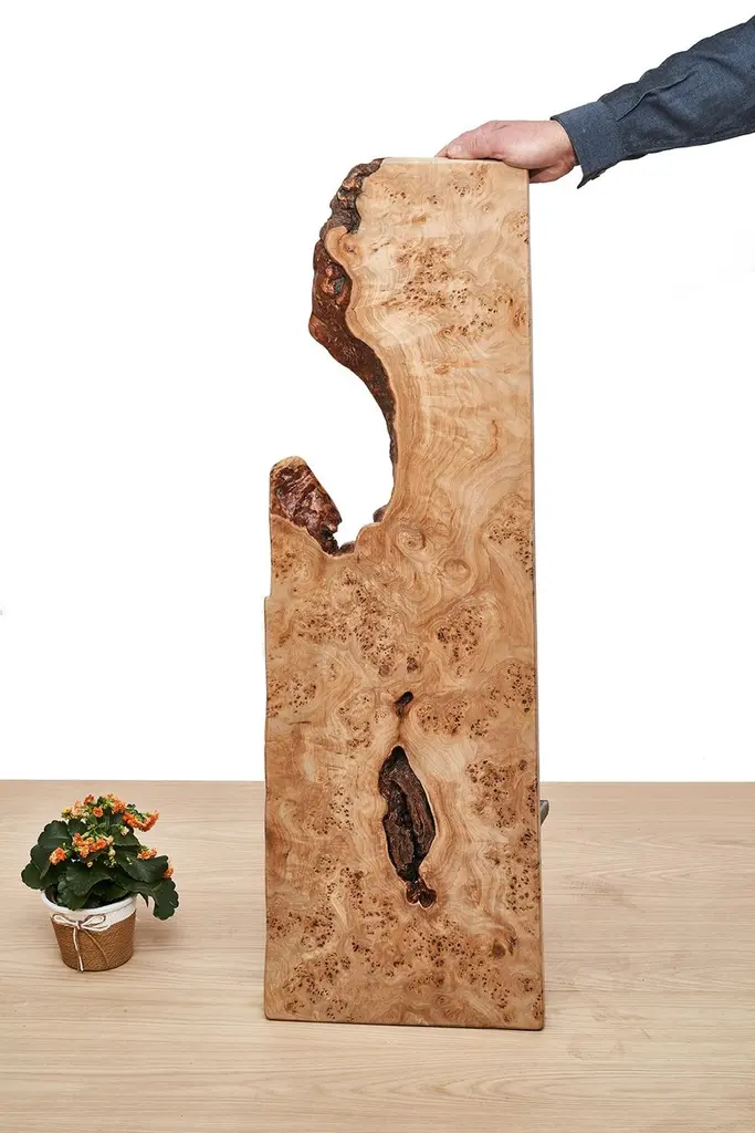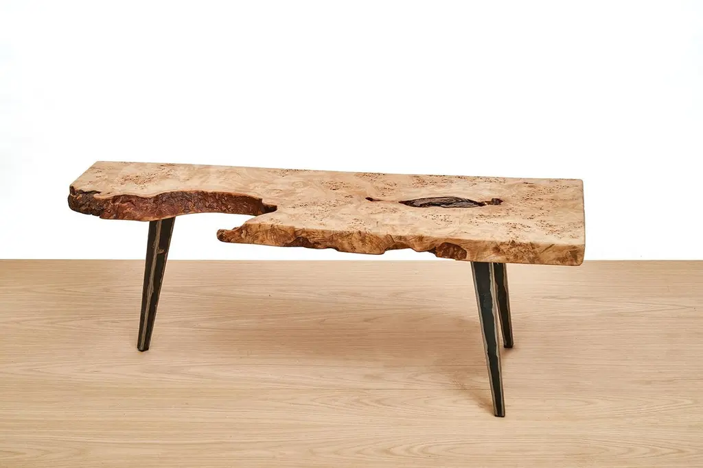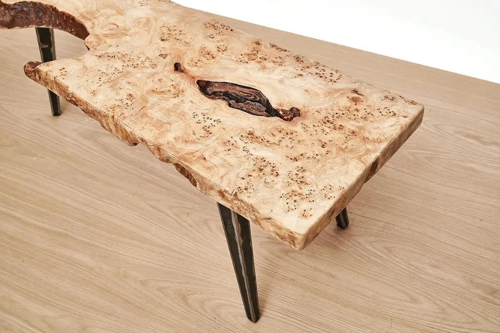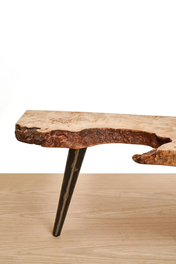 Arte coffee table by Jean-Baptiste Van den HeedeSigned unique pieceDimensions: L 114 x D 37 x H 42 cmMaterials: poplar root woodDesign tables from the ARTE collection in walnut wood with metal legs or legs in oak and hand-carved natural stone.Each piece of furniture is signed and unique for its characteristics such as solid wood and hand-carved stone.Each piece of furniture is packed in a wooden box for maximum care.Poplar root wood and industrial style steel legs.Jean-Baptiste Van den Heede defines himself as a cabinetmaker-designer and an artist of academic training and family tradition. He has achieved unique designs of national and international prestige and has several awards in avant-garde furniture.Born in Argentina in 1966, from an Argentine mother and a Belgian father. At 5 years of age he and his family moved to Belgium.To train as a wood professional, he first studied 4 years of carpentry. Then he continued training in cabinetmaking and carving for 5 more years. Always in search of contributing something more to his trade, he studied furniture and antique design, culminating this with the study of Sculpture at the Royal Academies of Fine Arts in Liège (Belgium) and graduating with honors.Work the stone, the wood and experience the forge. From the beginning it is directed towards a search for signs, abstract writings and unrealistic figures in analogy with other “Primitive” cultures. He taught drawing and sculpture in Brussels at the private school “la main et l´ esprit” As well as summer courses in Liege (Belgium) “les ateliers d´art contemporain”.In 1995 he went to Barcelona where he taught and investigated the reliefs of different supports such as trees, floors, and especially sewer covers.He searched again analogies between current art and Prehistoric, African art, etc.Participated in several exhibitions both at the artistic level and avant-garde design.In 2002, he moved down to Albacete and then to a town in the province where he still works.It is defined as “a search engine without haste or guidelines.” He says: “I only work when I feel a strong and positive inspiration invade me, an energy that I capture from matter, from the air and that I return doing the work until I feel a connection with it.”Private workshop of contemporary art in Letur (Albacete) until 2009.He currently works in his workshop-studio in the Sierra de Madrid (Guadalix de la Sierra) following his career as a cabinetmaker-designer and artist while teaching his trade to students interested in wood.