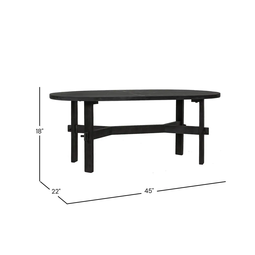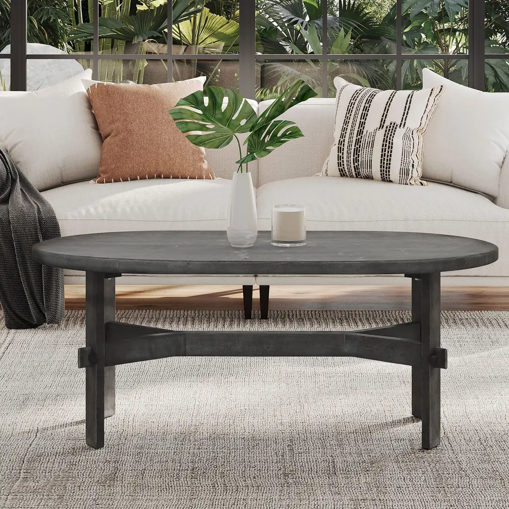 Asher Solid Wood Rustic Oval Coffee Table - Black