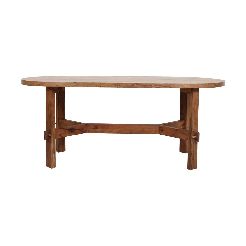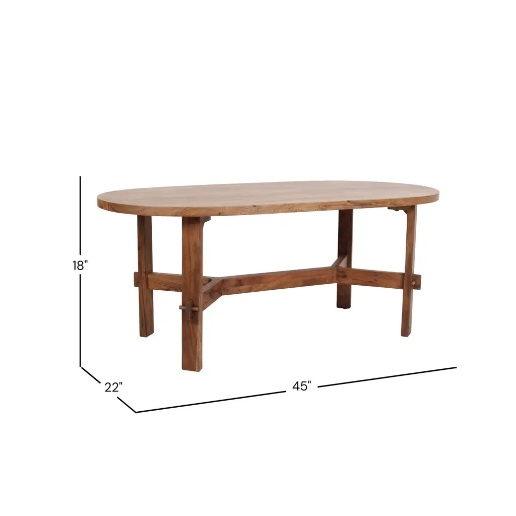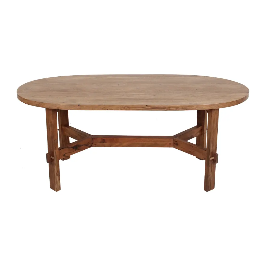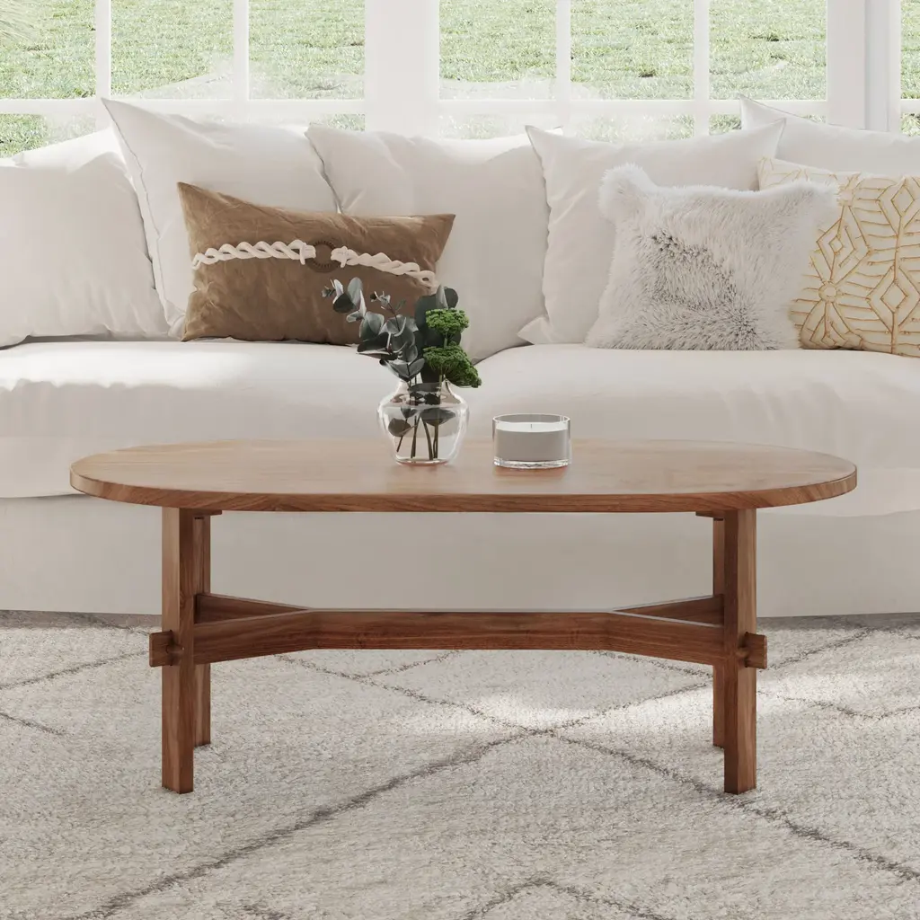 Simple yet refined, this oval coffee table is expertly crafted from solid acacia wood, highlighting its unique wood grain for a natural, earthy aesthetic. The elongated X-shaped base and straight legs create a sculptural silhouette, while mortise and tenon joinery ensure lasting durability. Available in multiple finishes, it seamlessly complements any space.
