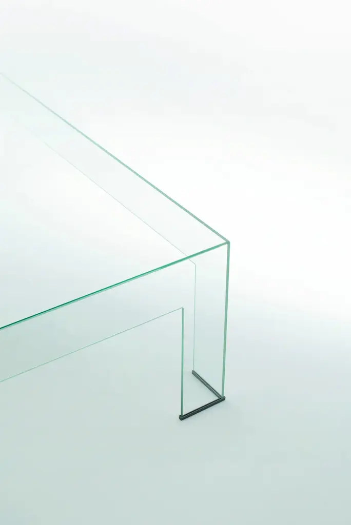 Atlantis is a series of high tables obtained by glued 8 mm thick tempered glass plates, cut with water jet and with 45° chamfered edge. Available in extralight transparent glass or glossy lacquered glass. The formal purity, the sobriety and the sophisticated craftsmanship are the main features of this high table.FINISHES:. Transparent extralight glass. Glossy lacquered glasses