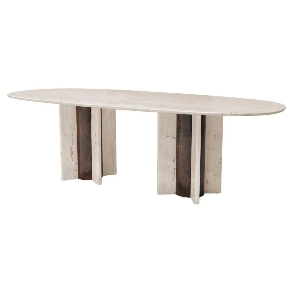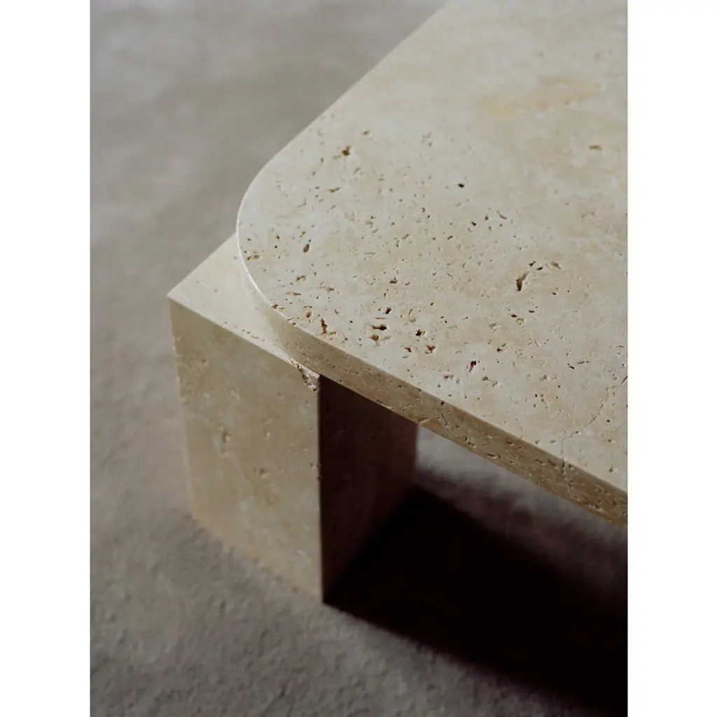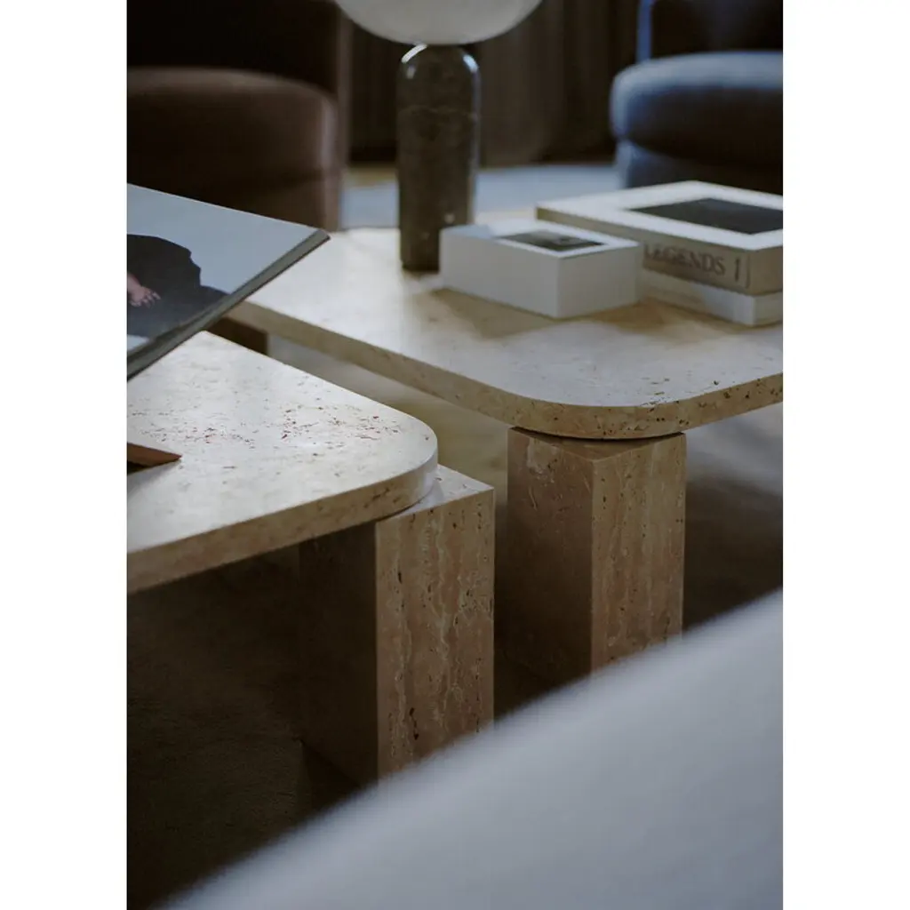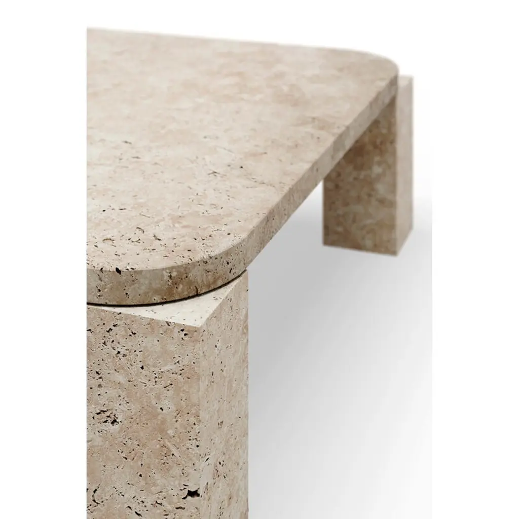 New Works' Atlas coffee table borrows both its name and its look from ancient Greece. The table, designed by John Astbury, got its appearance from Greek architecture and the classical order, and the name comes from the titan called Atlas. And indeed, the legs of the table are like the shoulders of a titan, which, according to mythology, were destined to hold up the heavens for eternity. The strong table legs and thin tabletop create a striking contrast that will charm in the home living room as well as in public spaces. The strong coffee table is made of unfilled travertine, which has been used as a building material since ancient times. As travertine is a natural material, its colors and textures are always unique and vary from one table to the next. Unfilled travertine also has small holes and hollows on its surface, which add more character and roughness to the look of the Atlas table.