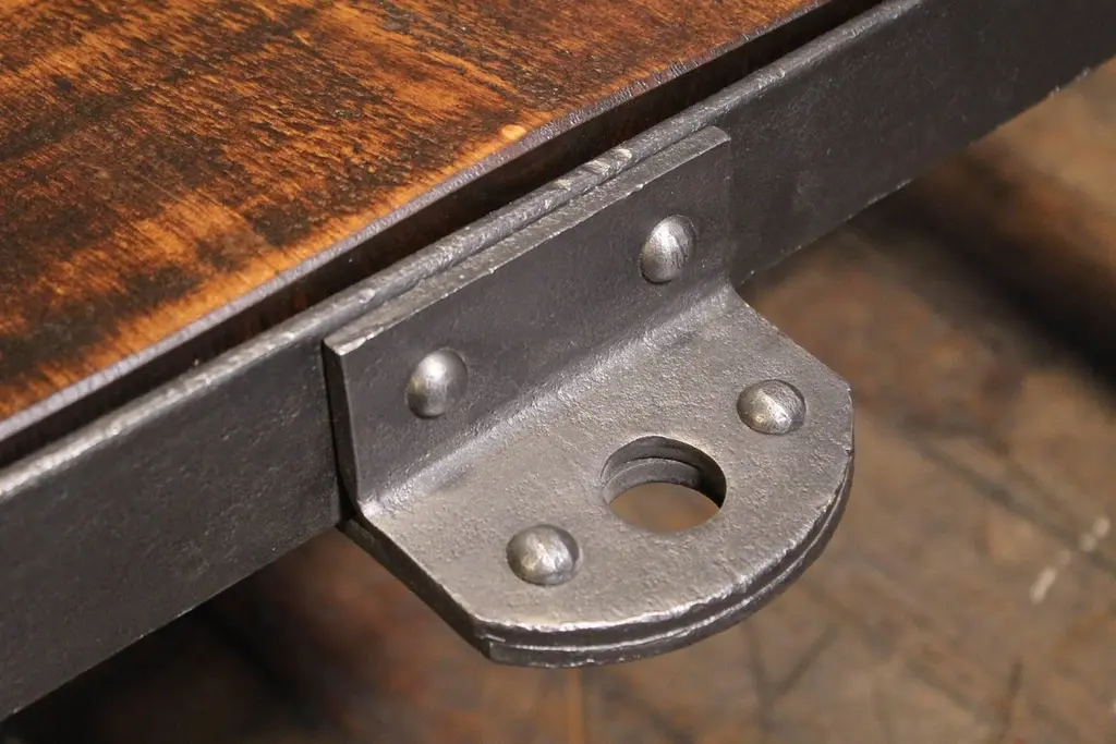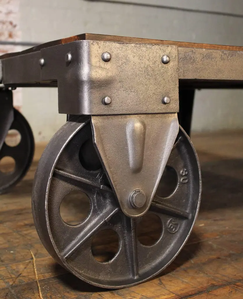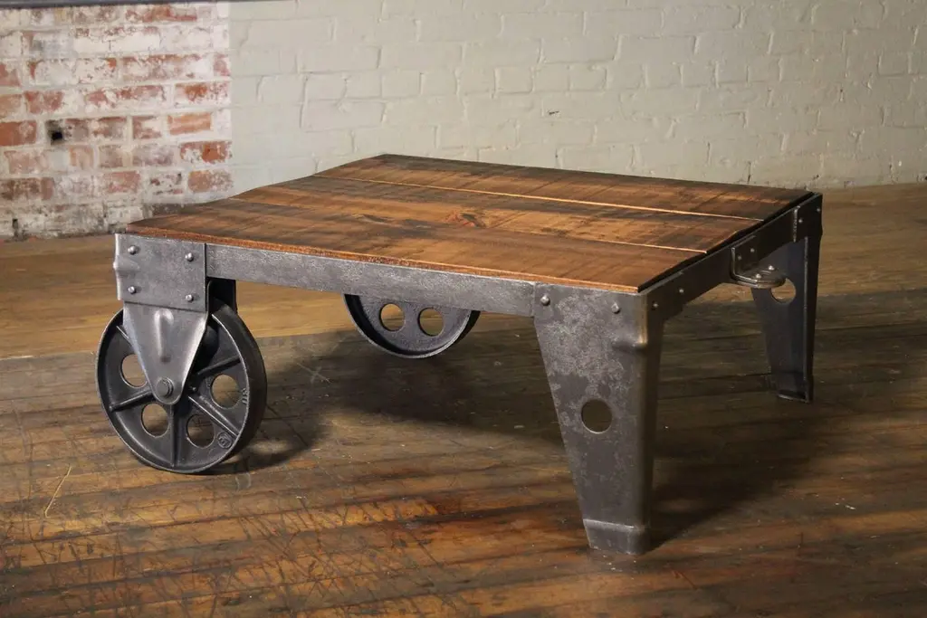 Authentic Vintage Industrial Cart Coffee Table Factory Shop Wood Steel And Iron