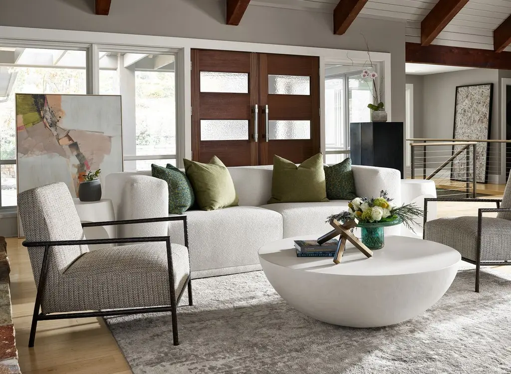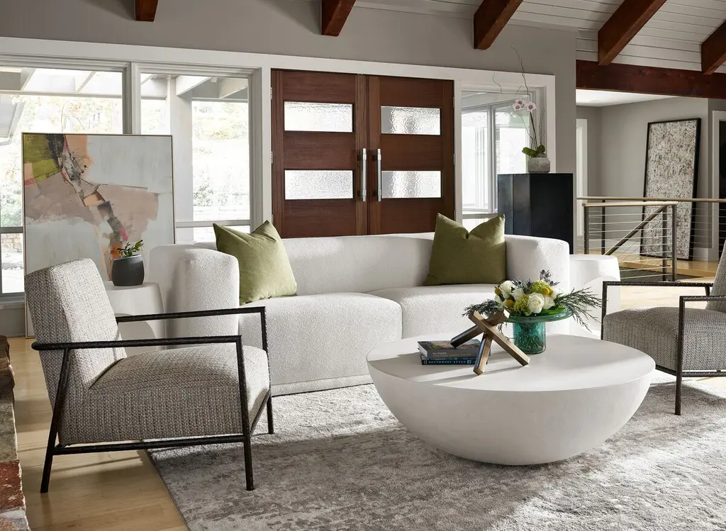 A tale of two textures: The smooth top of this half-globe coffee table provides a quiet contrast to the richly texture, plasterlike sides, adding to its sculptural allure.