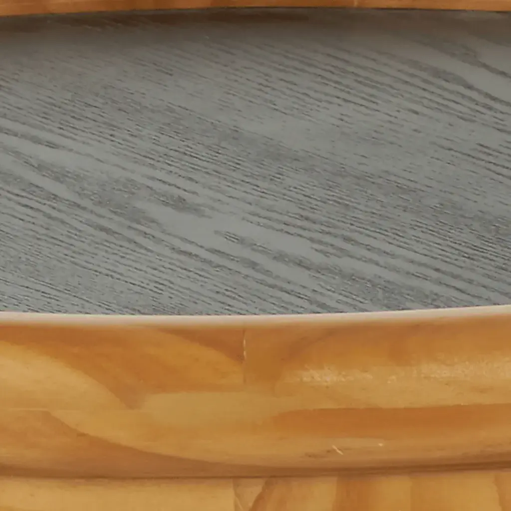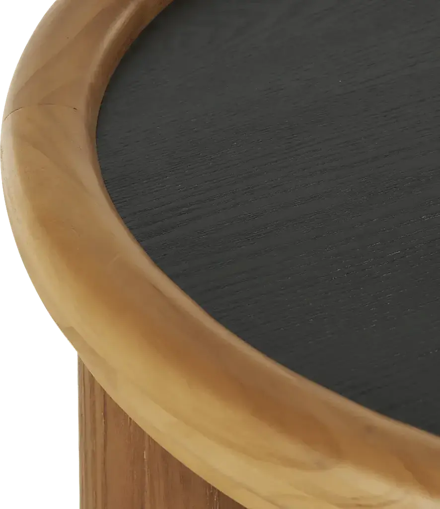 Designed with a free-spirited charm where vibrant hues, eye-catching patterns, and whimsical accents transform your space and showcase your personality. The Avele II coffee table is crafted from high-quality pine, MDF, ash veneer, and PVC, making it stylish and durable. This round living room furniture features a varnished brown wood finish with a sleek black tabletop, creating a stylish and eclectic centerpiece for any space. The pine coffee table boasts a black tabletop that contrasts well with its varnished brown legs. Customer assembly is required.
