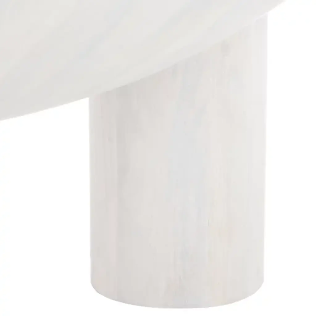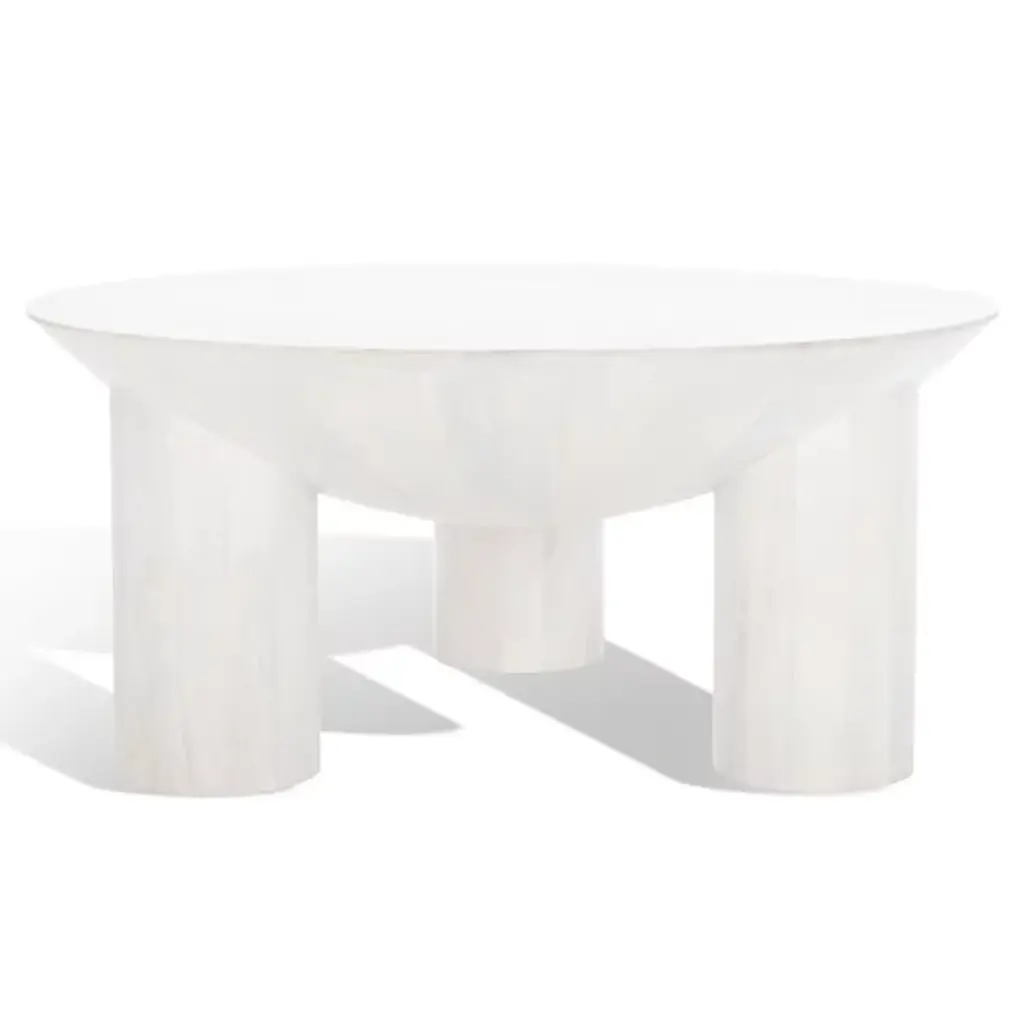 The Avely Wood Coffee Table is presented by Alder & Ore. It is a statement piece that combines a bold and playful design with a captivating sculptural silhouette. Its asymmetrical structure adds an element of intrigue and uniqueness to any living space. The table stands on three chunky cylindrical legs, further enhancing its distinctive aesthetic. Crafted with solid mango wood, the Avely Coffee Table boasts both strength and natural beauty.