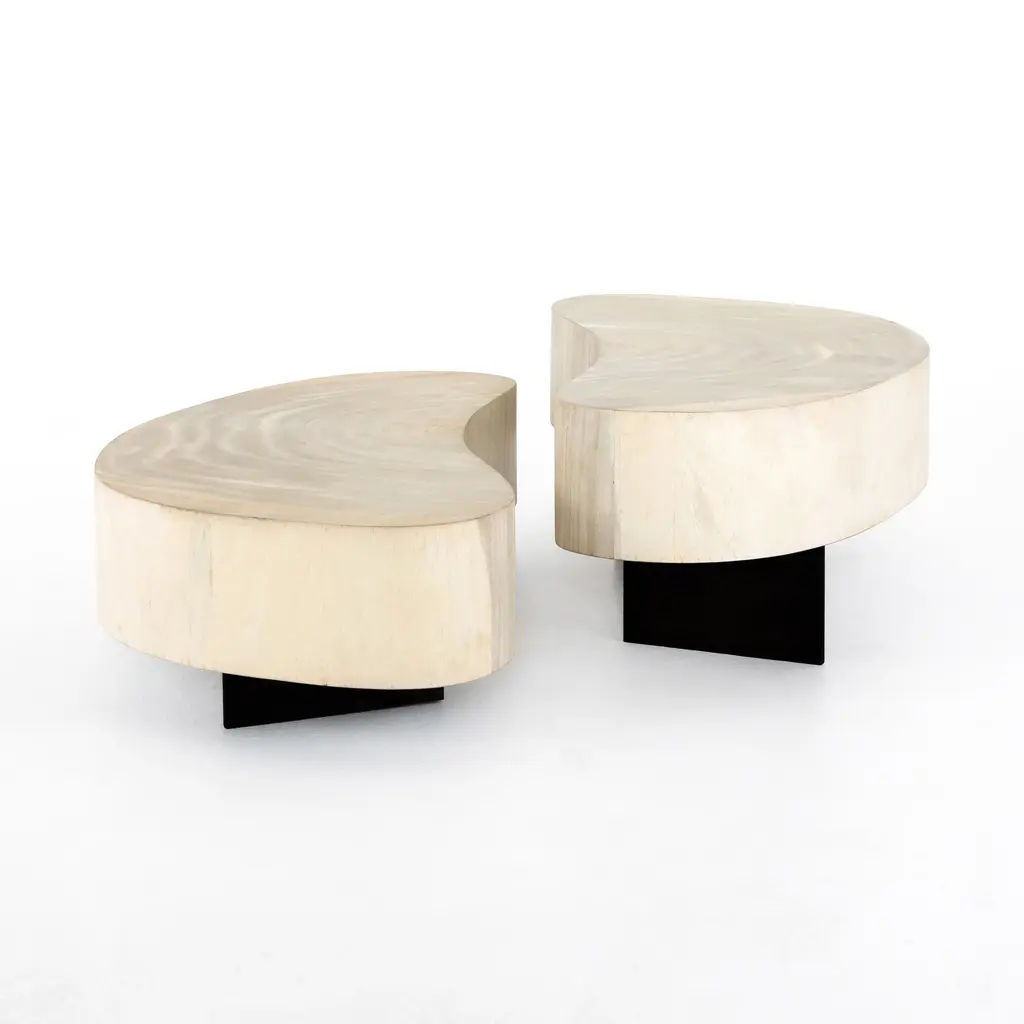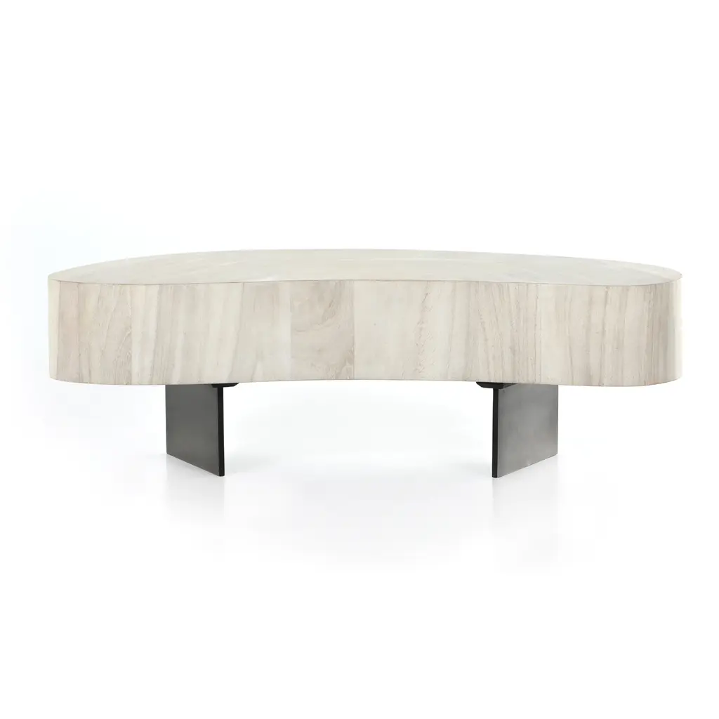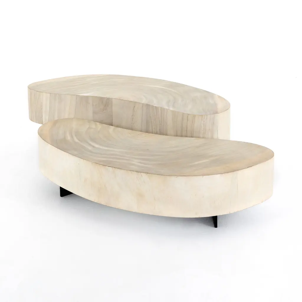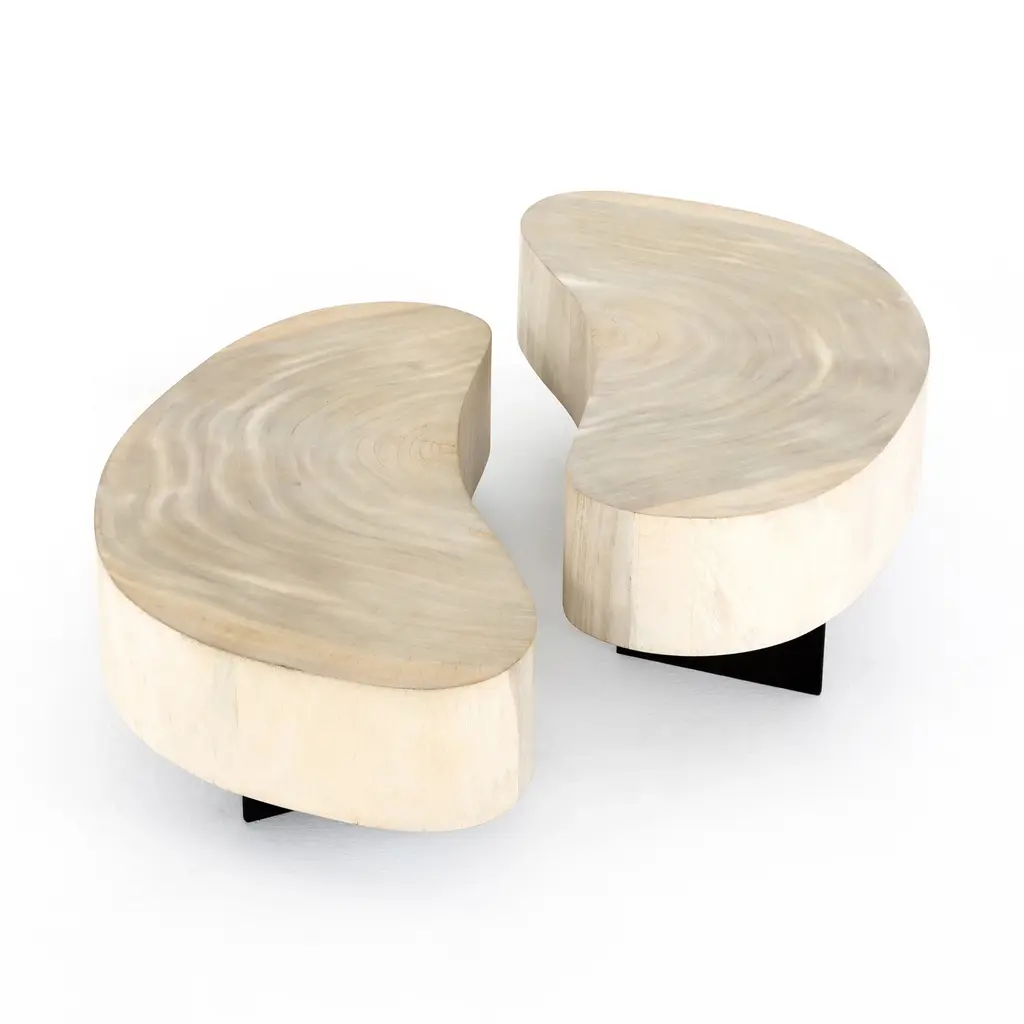 The Avett Coffee Table from Four Hands adds an elegant and sophisticated touch to any living space. Its captivating kidney-shaped design, crafted from oyster-cut Guanacaste wood with captivating visible rings, showcases natural graining. Its gunmetal-finished base adds a modern touch to the look, perfect for giving any room a touch of high-end luxury. Highlights