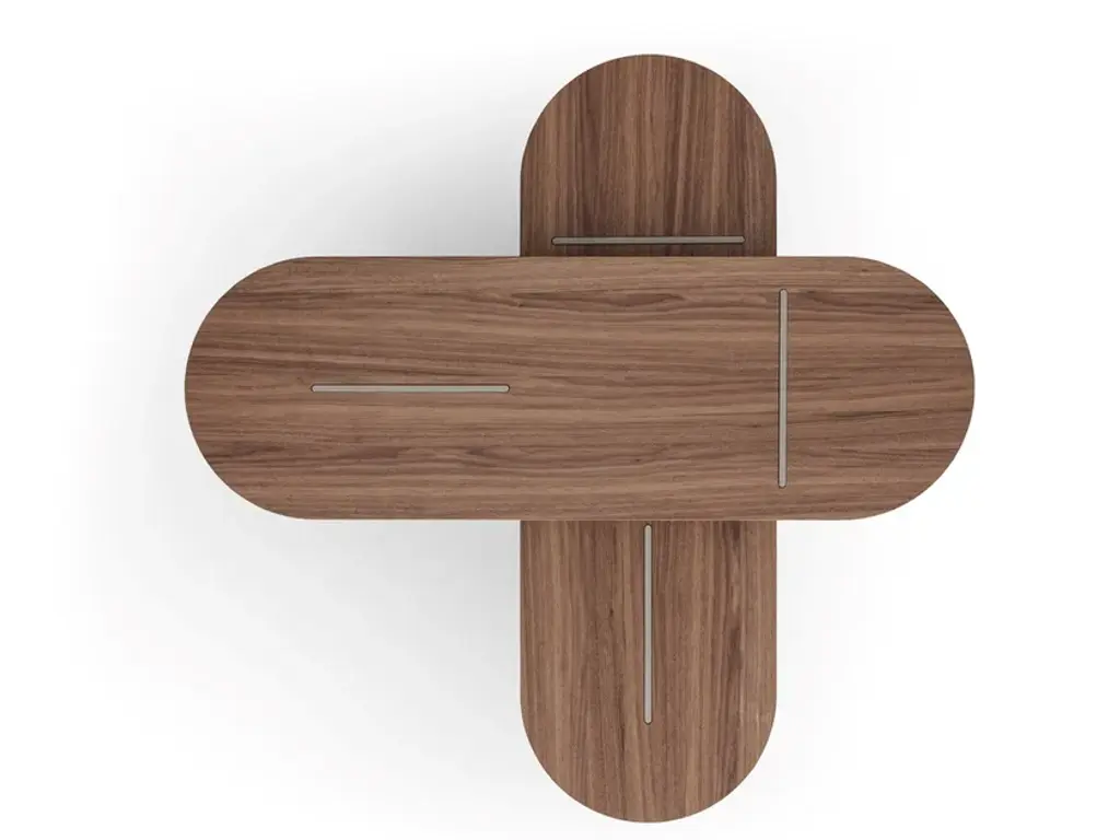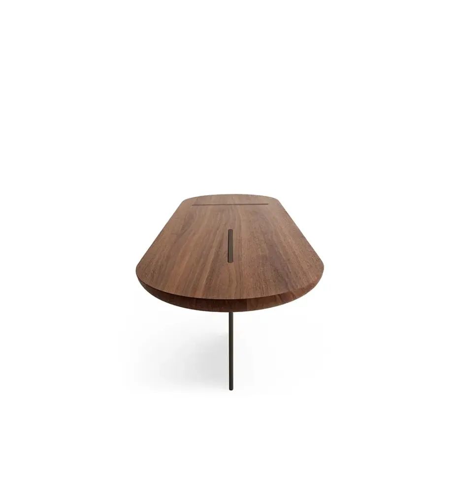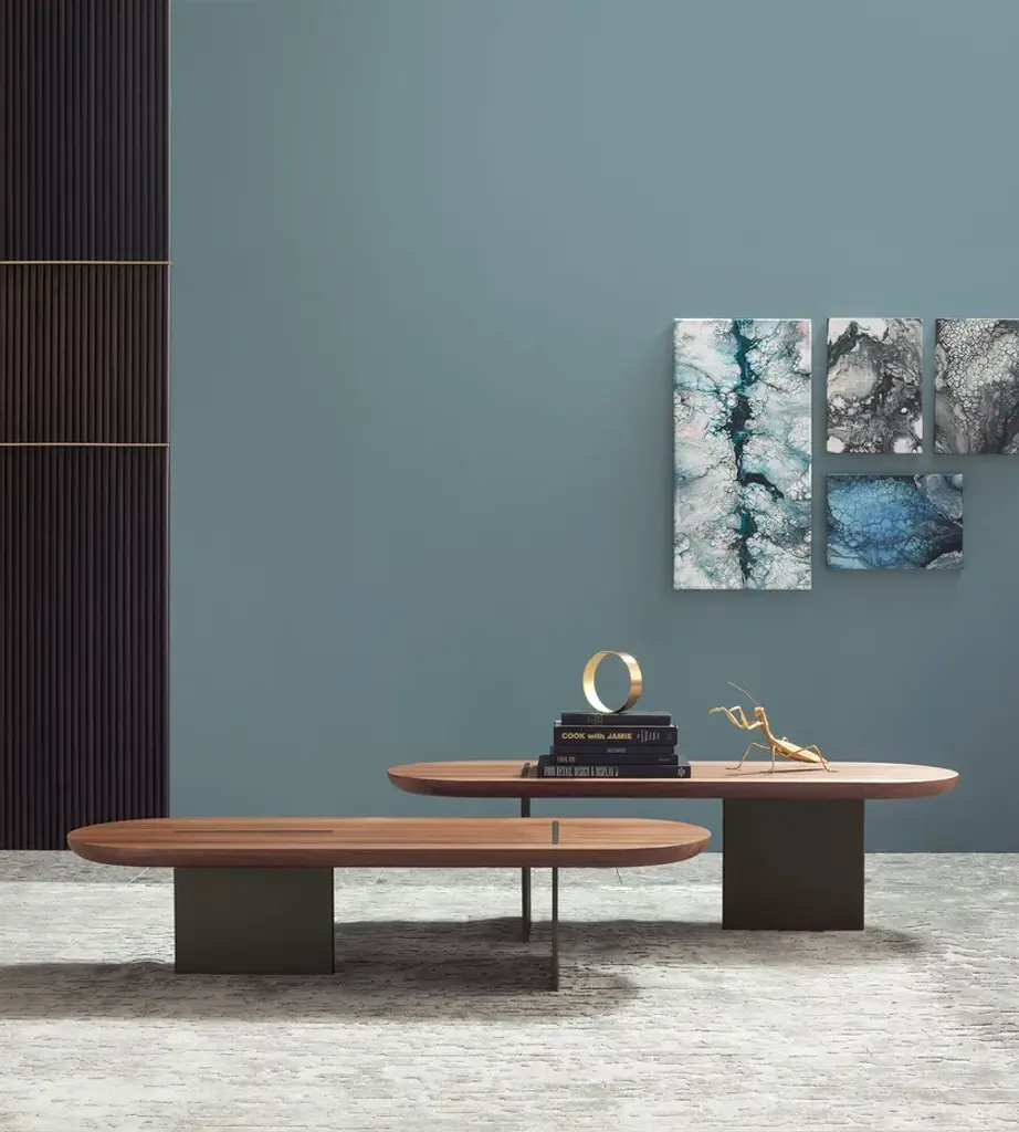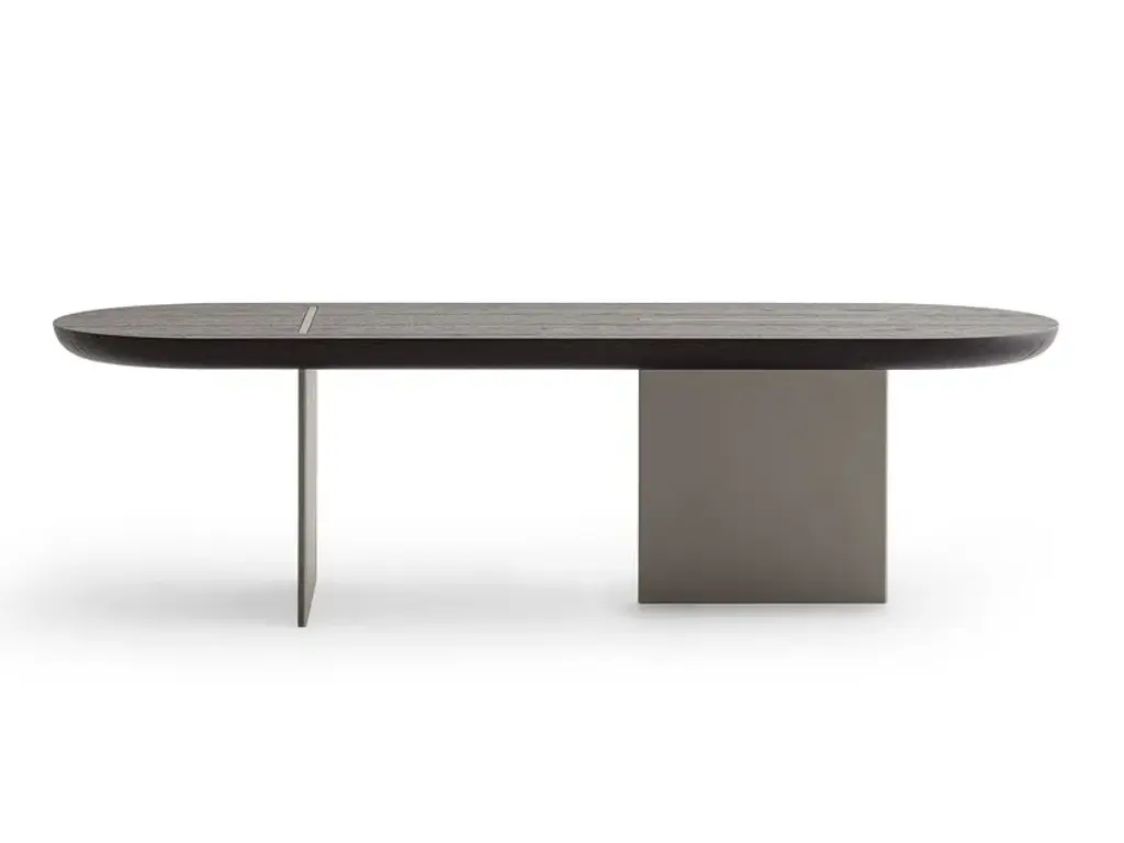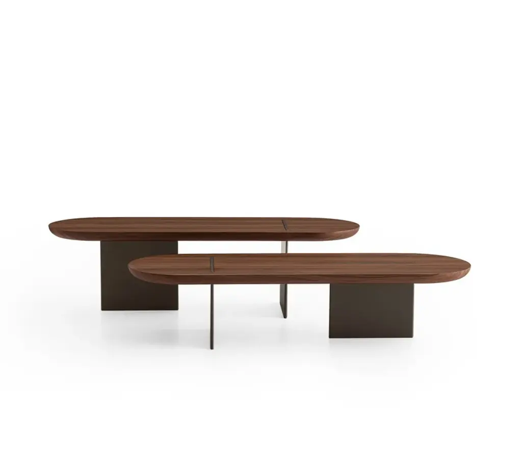 BAGUETTE is a coffee table with base in rounded, epoxy powder-coated metal and champagne finish. Top in shaped and rounded 40 mm MDF with Laguna sessile oak veneer, finished using low environmental impact varnishes. Available in two sizes.Available in finishes:Lagoon oak: code HM.BAG.DP.RL.MC / cod. HM.BAG.DM.RL.MCCanaletto walnut: cod. HM.BAG.DM.NC.MC / cod. HM.BAG.DM.NC.MCHaute Couture gets its inspiration from high fashion, where stitching, workmanship and materials are at the core of the design. Dressers are outfitted using hand-crafted leather, the furniture is embellished using precious marble, and the wood is selected on the basis of its grain. The synthesis of this collection is a modern line with a contemporary slant that is embodied in a luxury that is not overly flashy but grounded in sophistication. Timeless products made with high quality materials and handcrafted in Italy.
