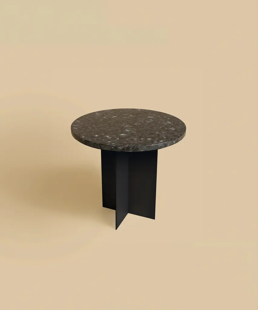 The Baker coffee table is produced with a powder-coated metal base and a top in Calacatta Violet marble. The top is circular and has a diameter of 17,7 inches, while the base is obtained by manually welding metal plates perpendicular to each other.Founded by Emanuela Terraneo and Alessandro Pozzi, Lebanto designs and produces modern and refined furniture in Cantù, Italy.