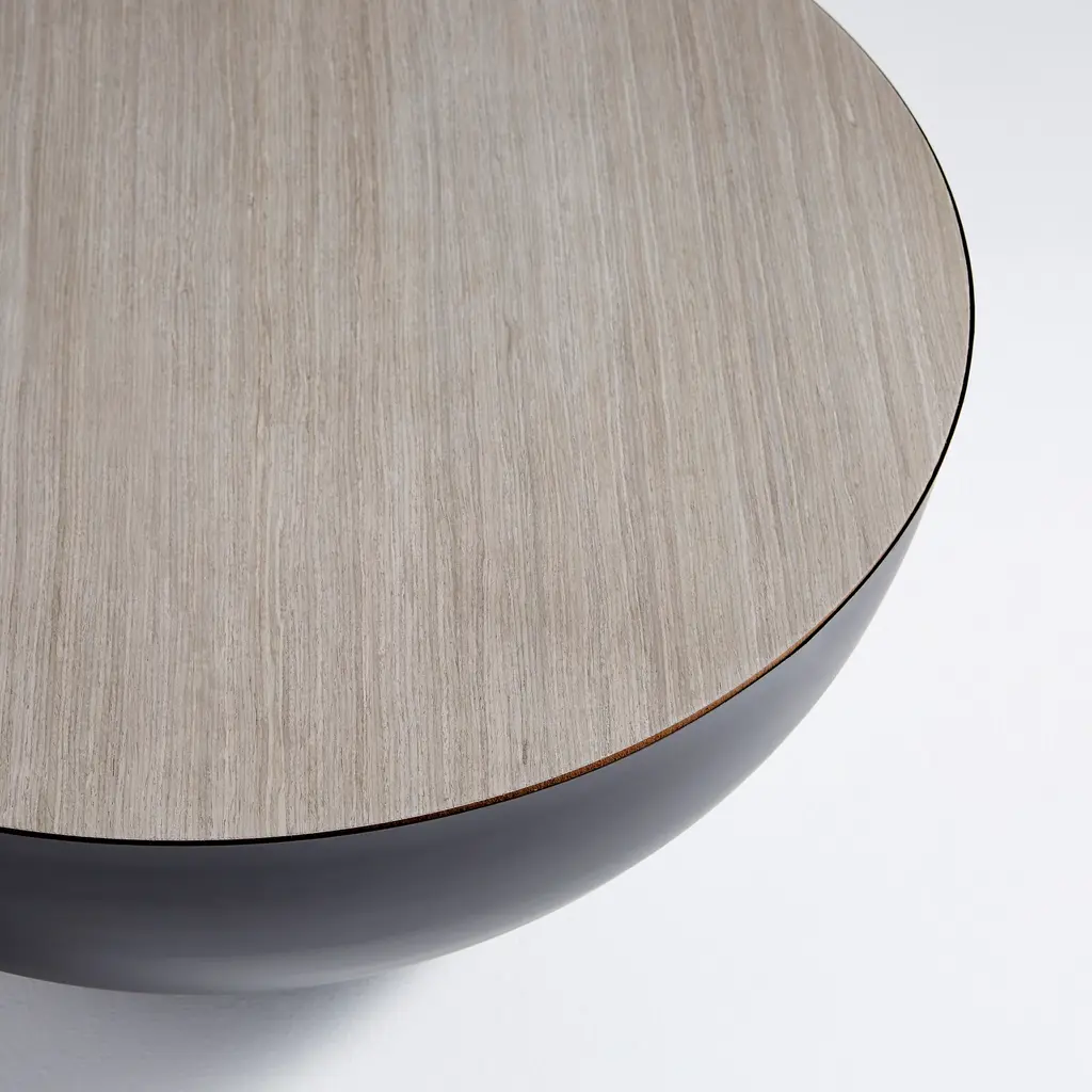 The Balance coffee table is the epitome of simplistic decor. Sophisticated, with a striking geometric inspiration, this furnishing also marries elements of natural design into its overall look. A perfect graphite semi-circle balances the wooden surface-top for a look that toes the line of modern/eclectic. This compact table is the ideal anchor piece for cozier loft or condo spaces. Incorporate the Balance coffee table into any style look, thanks to its versatile, unassuming design.