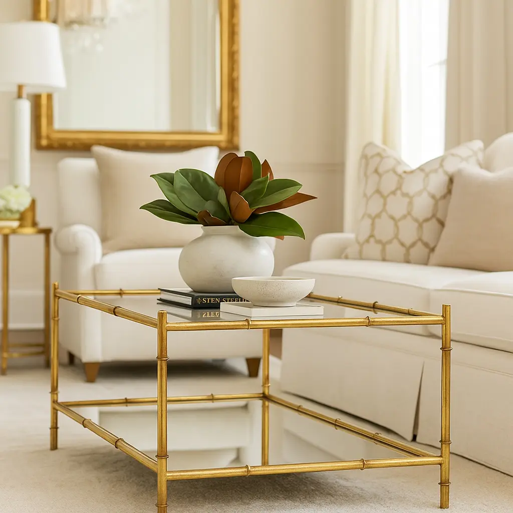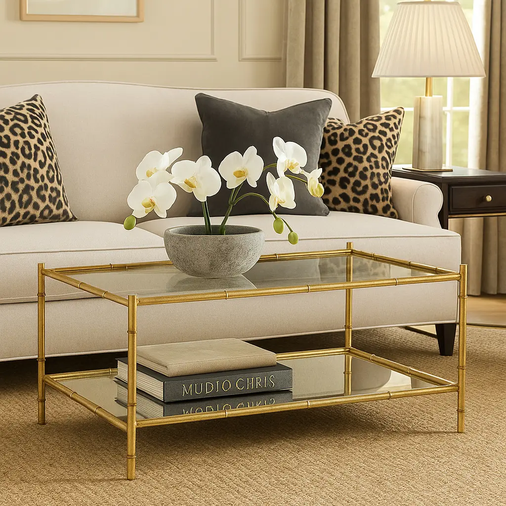 Bamboo Two-tier Coffee Table, Antiqued Gold