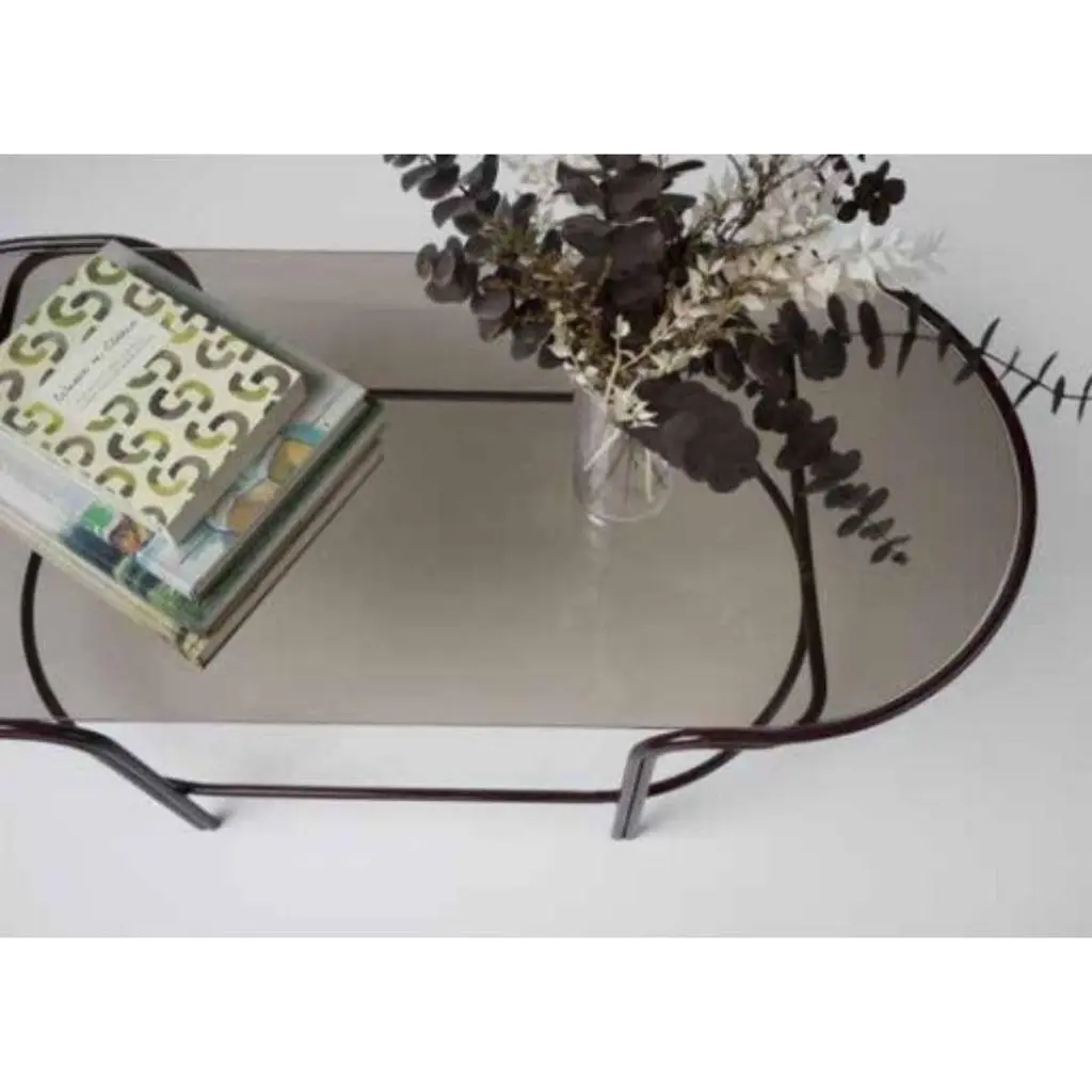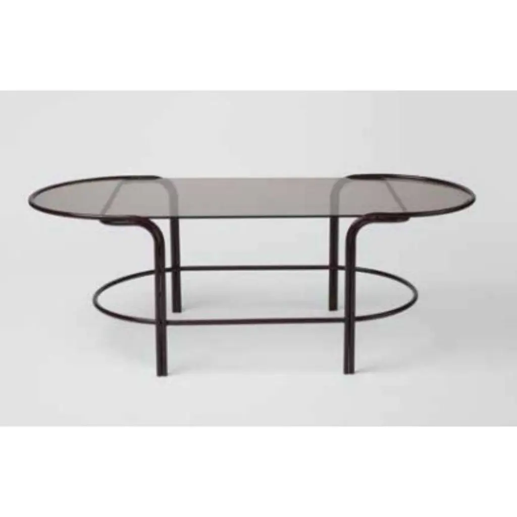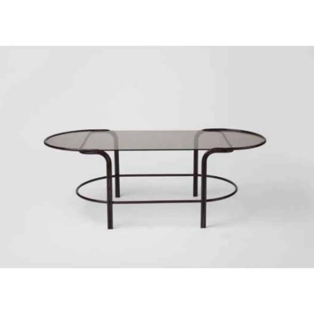 Bancroft table by Laun ( Handmade in Los Angeles )Hollywood CollectionDimensions: H.38 D.50 W.95 cmMaterials: Powdercoated Stainless Steel, GlassAlso Available: All pieces are made to order. Custom sizing and finishes upon request.The Bancroft coffee table is a sophisticated piece for both indoor and outdoor use. The table’s classic form is inspired by Los Angeles’ Streamline Moderne architecture and works equally well by the pool as it does in a formal living room.LAUN is a Los Angeles-based design firm focused on enriching the built environment through architecture, furniture and creative collaborations.LAUN Studio prioritizes curiosity and exploration as the founding design tenants in architecture and interiors.LAUN was founded in 2018, when friends Rachel Bullock and Molly Purnell brought together their backgrounds in woodworking, metal working and architecture to build a practice of enduring spaces and products. The company’s objectline harnesses the unique talents of Los Angeles based manufacturers to craft timeless, heirloom quality furniture suitable for both indoor and outdoor use.