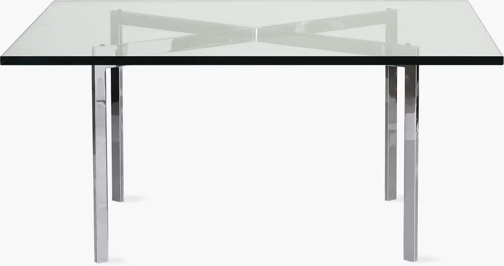 Absolute in its elegance, the Barcelona Table (1930) flawlessly complements the Barcelona Chair, featuring seamless, single-piece base construction for precision and durability. The polished chrome frame is stamped with the KnollStudio logo and designer Ludwig Mies van der Rohe's signature. This is the authentic Barcelona Table manufactured by Knoll according to the original and exacting specifications of the designer. Glass top made in U.S.A.; base made in Italy.