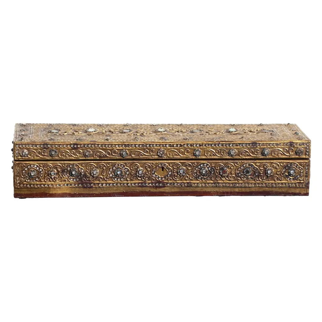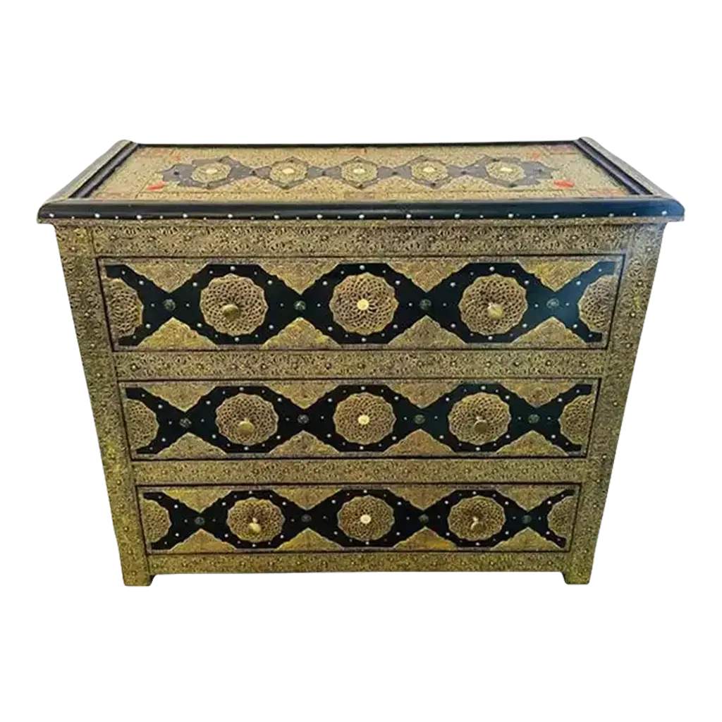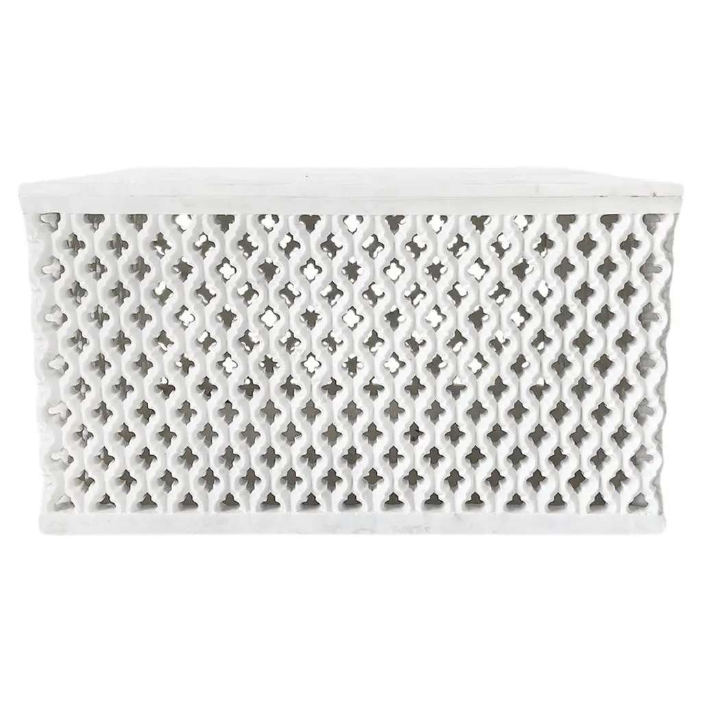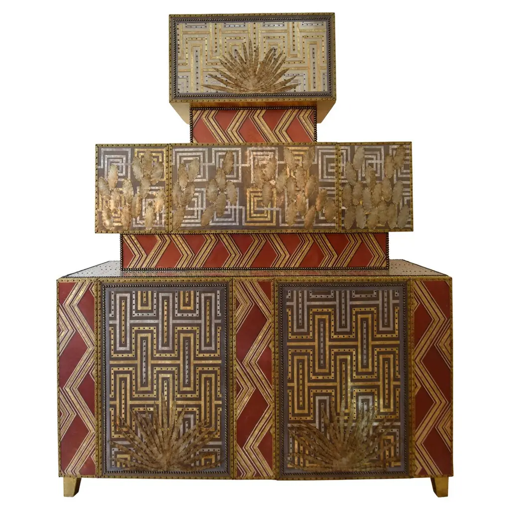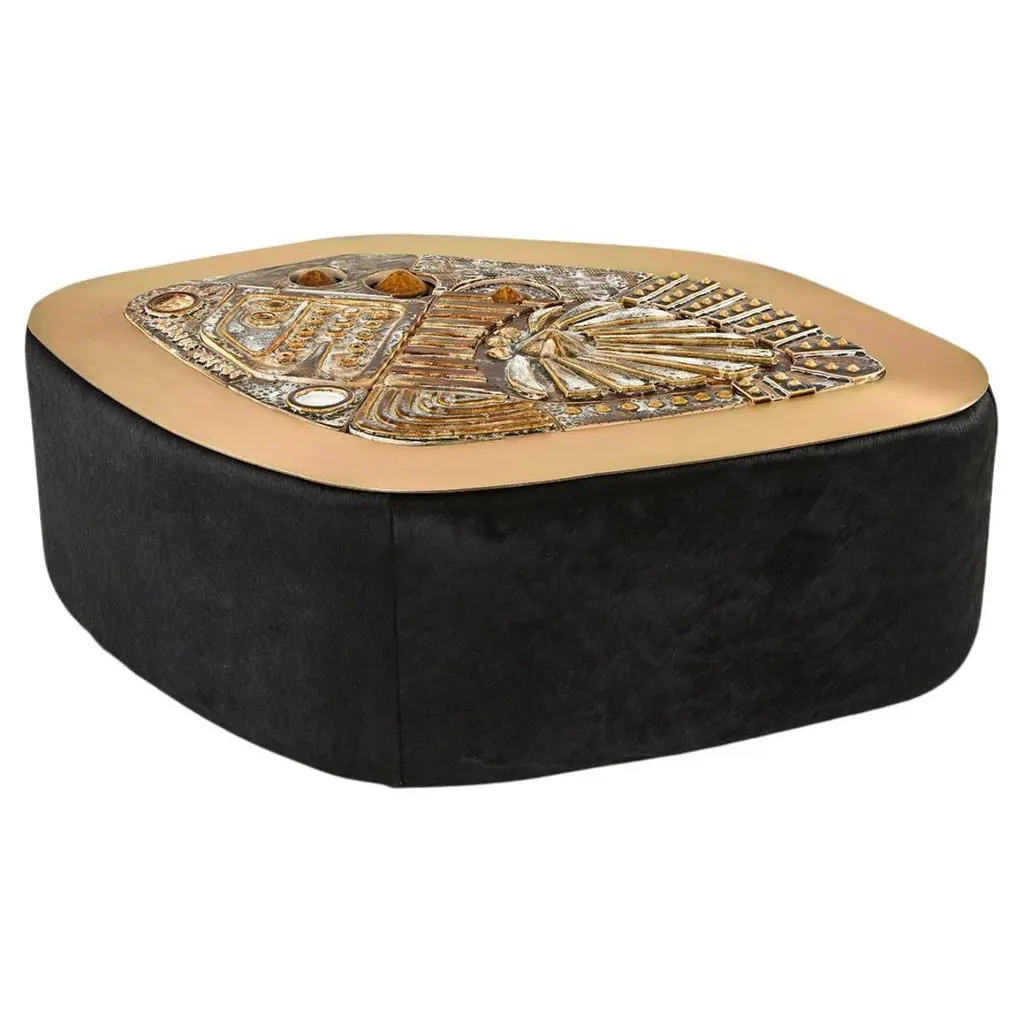 Add a well-traveled layer to your living room seating area with our Barclay Coffee Table. Modeled after the vintage steamer trunks of yesteryear, this simple, blocky piece is completely clad in handsome dark brown leather and features hammered antiqued brass trim, as well as beautiful ornamental designs created by hundreds of antiqued brass nailheads. It hardly matters that it’s only a faux trunk with no hidden storage — Barclay’s luggage-esque looks still make it perfect for adding a bit of globetrotter style to a timeless, collected home. •leather •antiqued brass nailheads Description•35.75"W x 24"D x 16"H