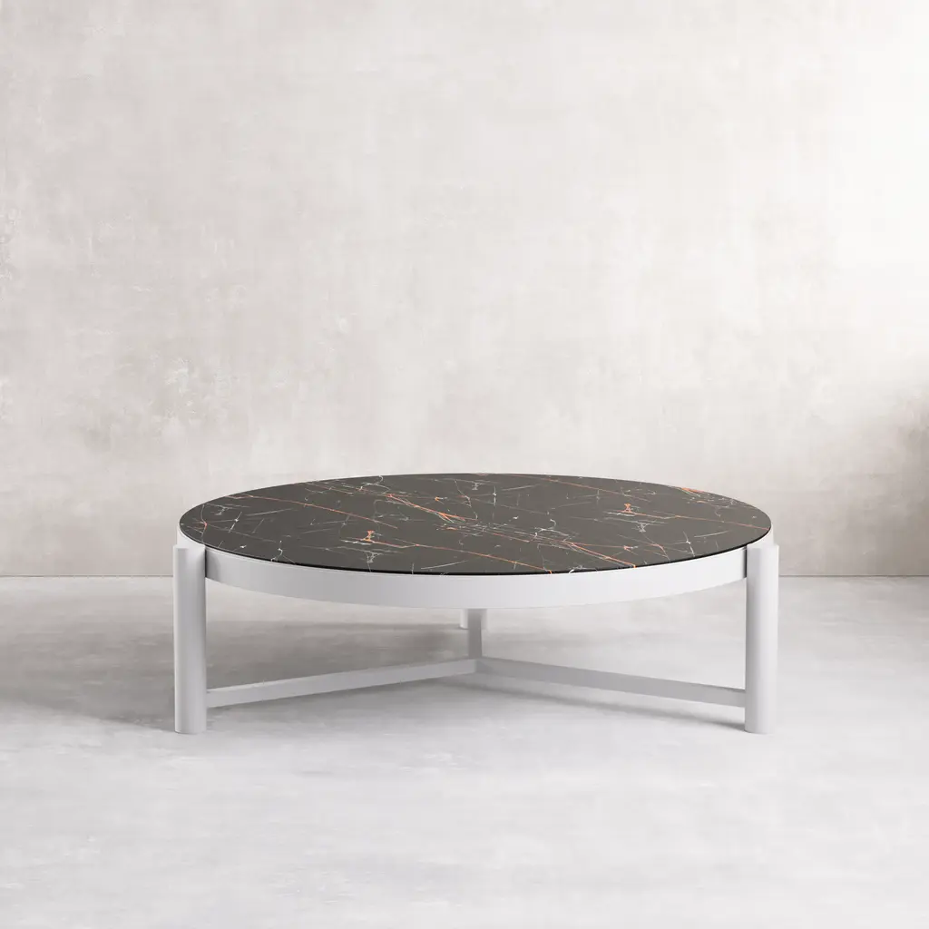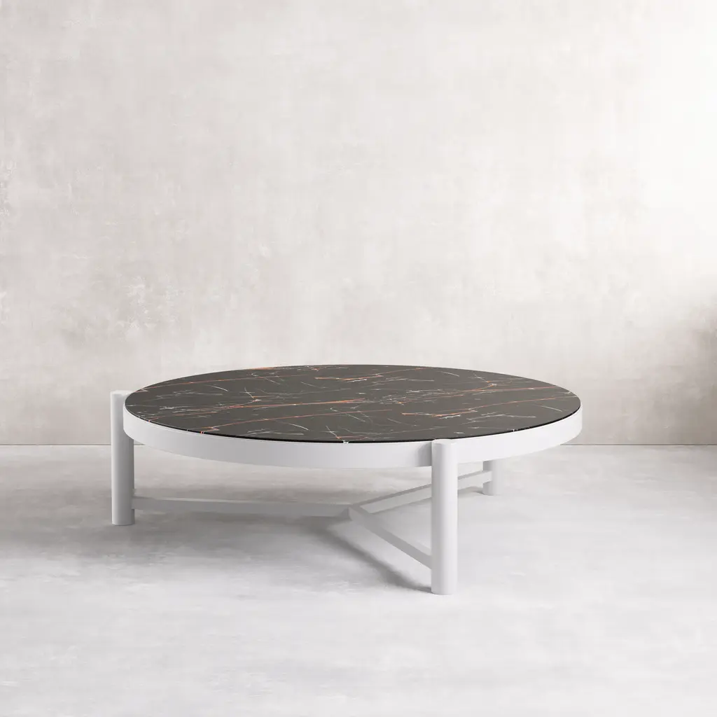 Our round Bari coffee table has a chic ceramic surface. Weather-resistant without sacrificing aesthetics, this centerpiece is ideal for your outdoor space. Curate the terrace of your dreams with this timeless and elegant addition to your exterior. Dimensions: 49.6''W x ''D x 14.9''H Tear Sheet