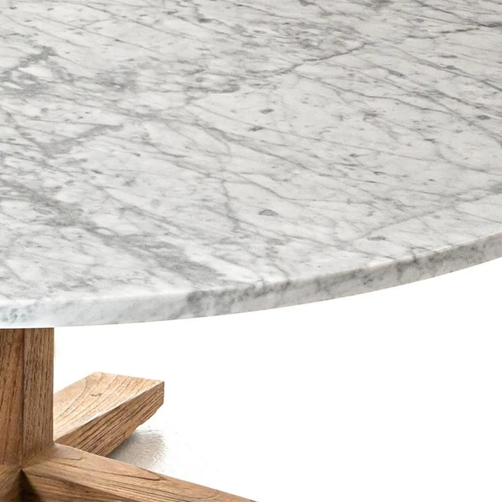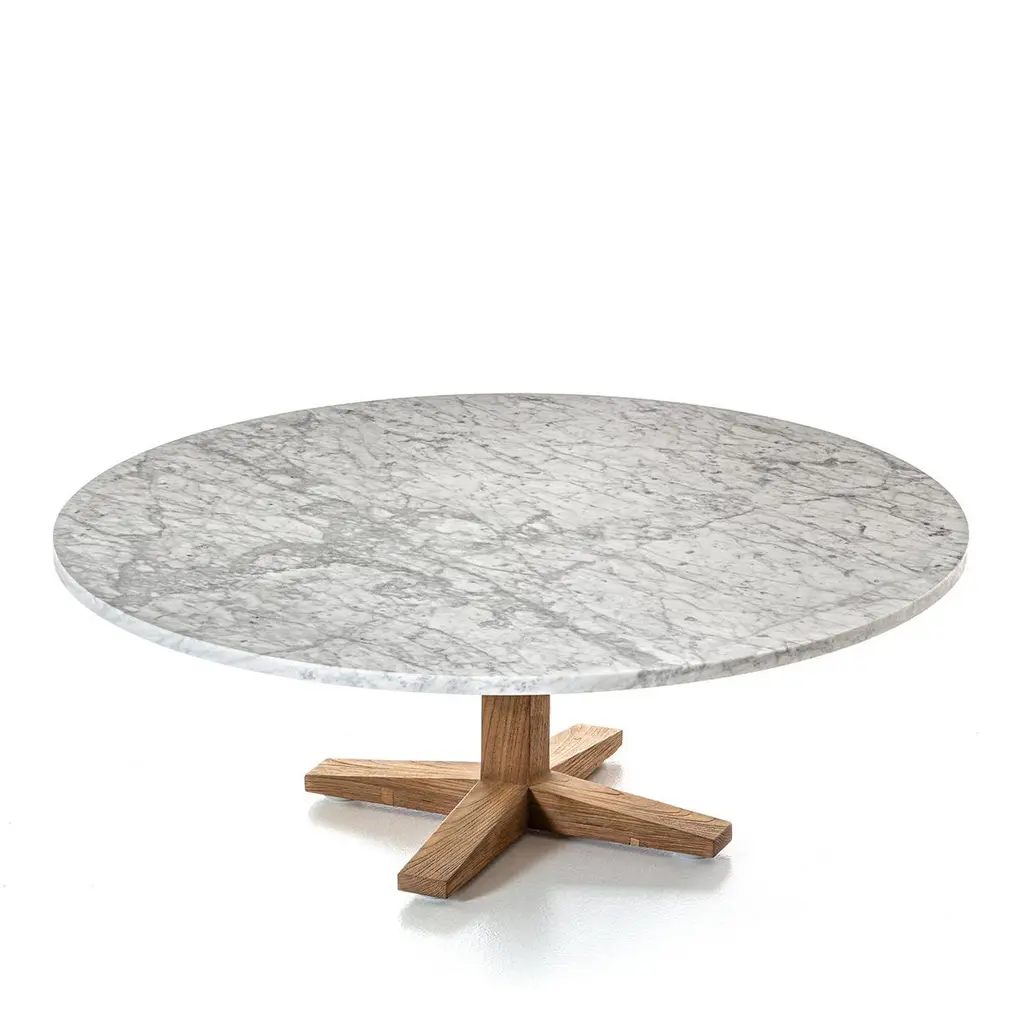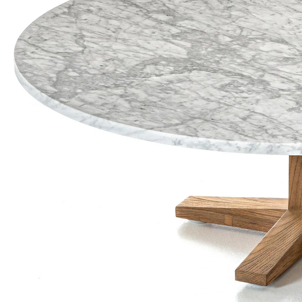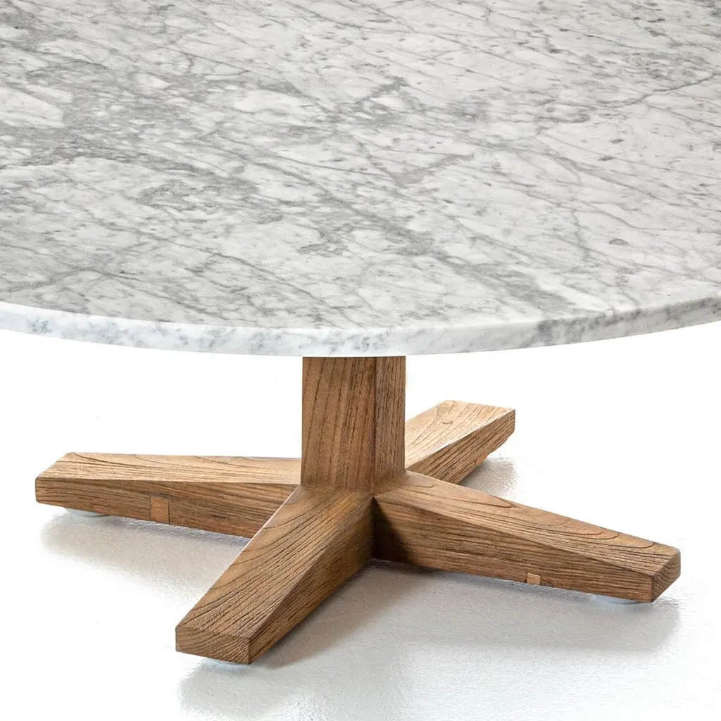 Coffee table Barletta with structure in solid teakWood and with polished carrare white marble top.